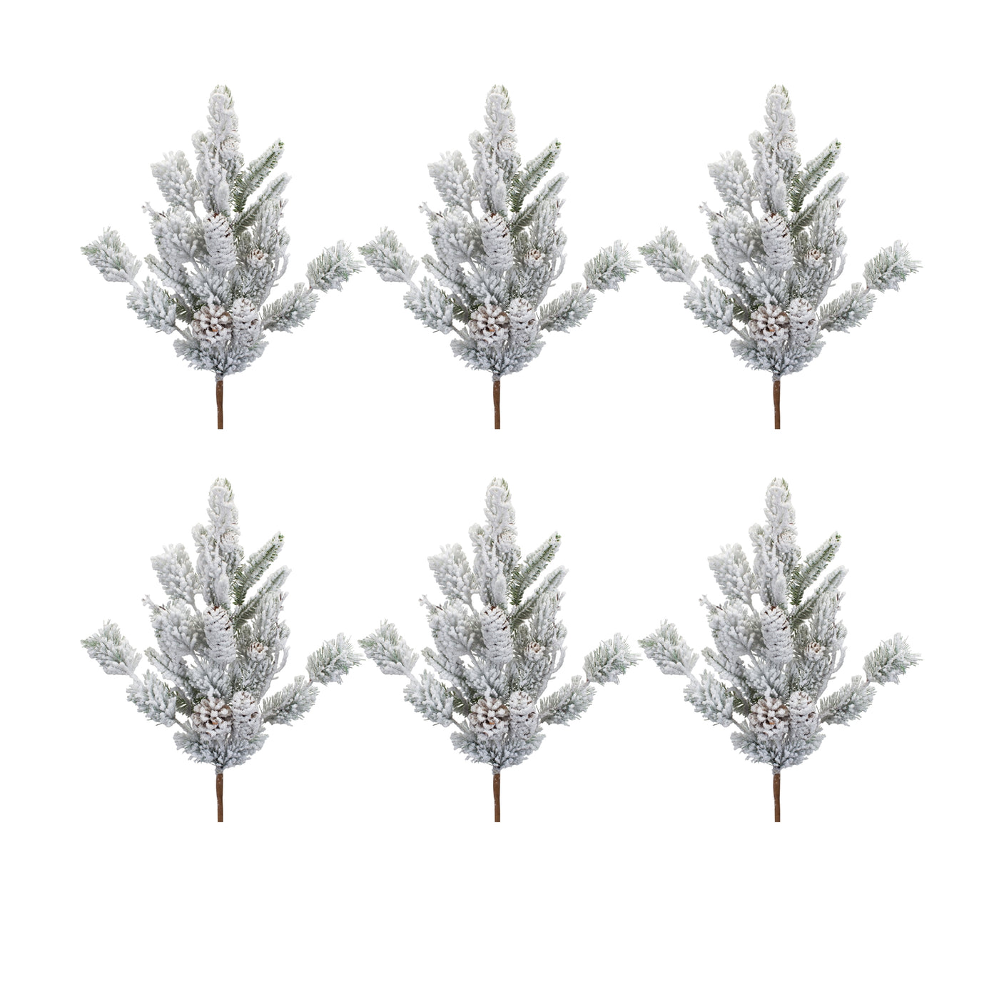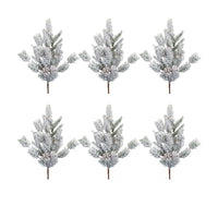 Snowy Mix Pine Spray 32''H Plastic Ring in the holiday season with this beautiful set of Snowy Pine Sprays. Featuring six pieces, this set would be a great addition to your Christmas centerpiece or table arrangement. The varigated pine foliage paired with the pinecone accents and ''snowy'' finish is the perfect combination to create a stunning Christmas display. Add this set to a table vase to make a statement. Measures 32 x 14.25 x 3.25 each Primary Materials: Plastic, Paper Reccommended for indoor and outdoor covered use only
