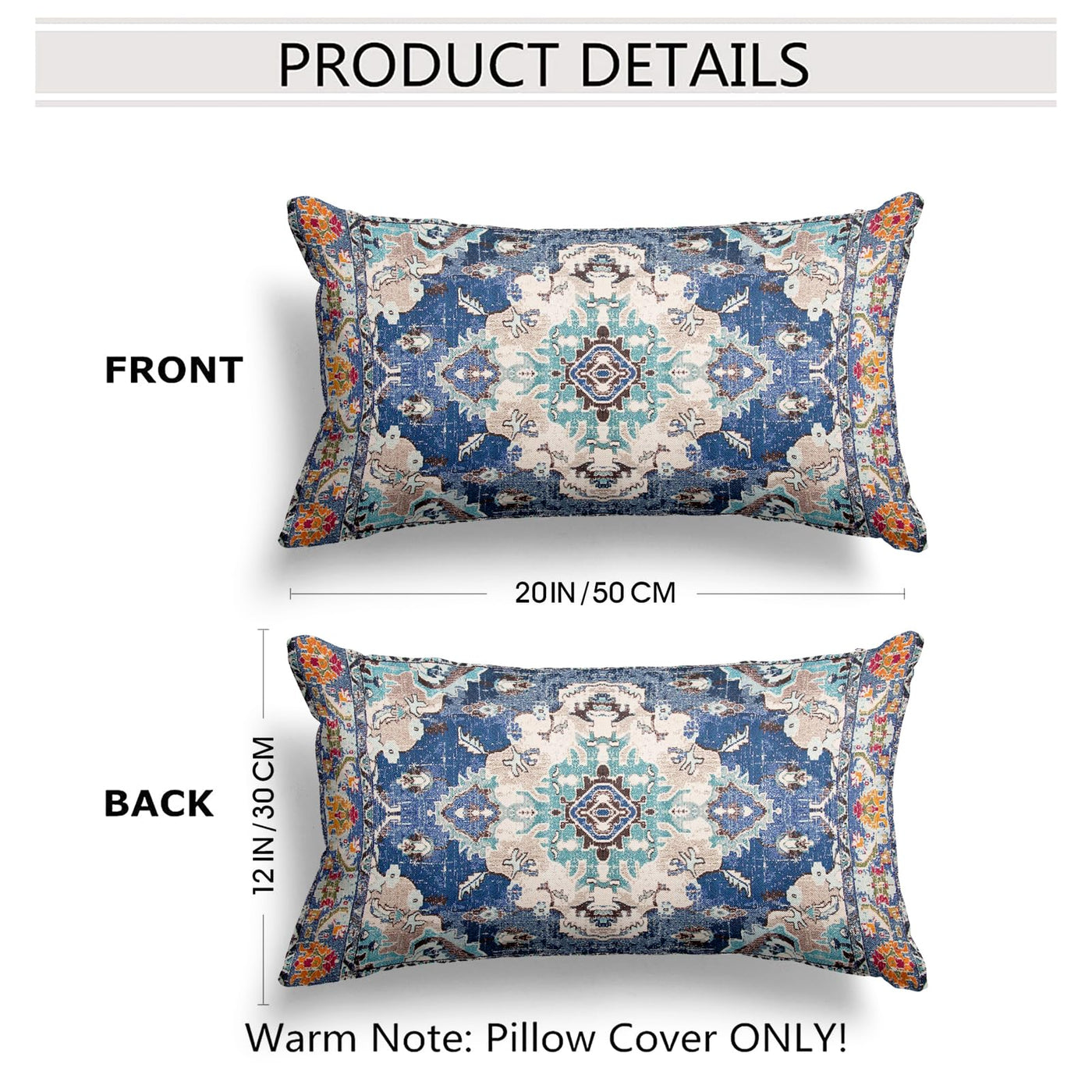 Snycler Boho Throw Pillow Covers 12X20 Inch Set Of 2 Boho Rug Carpet Double Sided Pattern Cotton Soft Pillow Case Cushion Cover