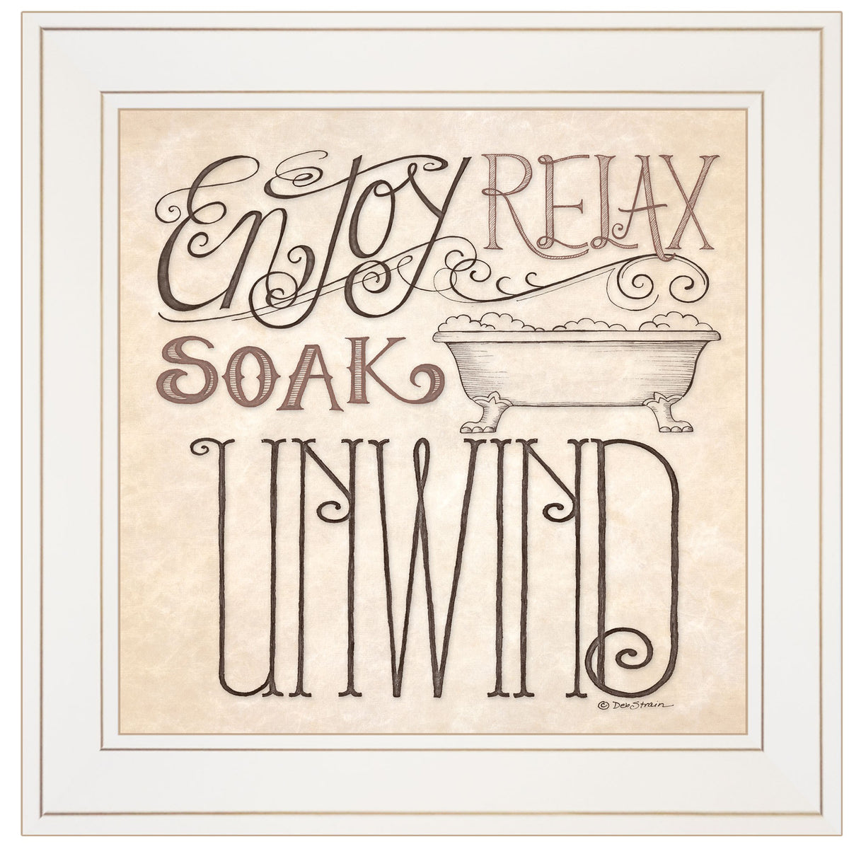 This soak Relax Enjoy and Unwind white framed print wall art will add a beautiful decorative accent to your decor. This print is a visual artistic expression that allows you to decorate your space in restyle. Reproduced for you on paper, this hanging accent will be a trendy and fashionable way to dress your walls. Adding this hanging wall art to make your room feel more finished and attractive. Instantly liven up your space with this art that dimension brings color to your space. Walls: 15' H x 15' W x 1' D