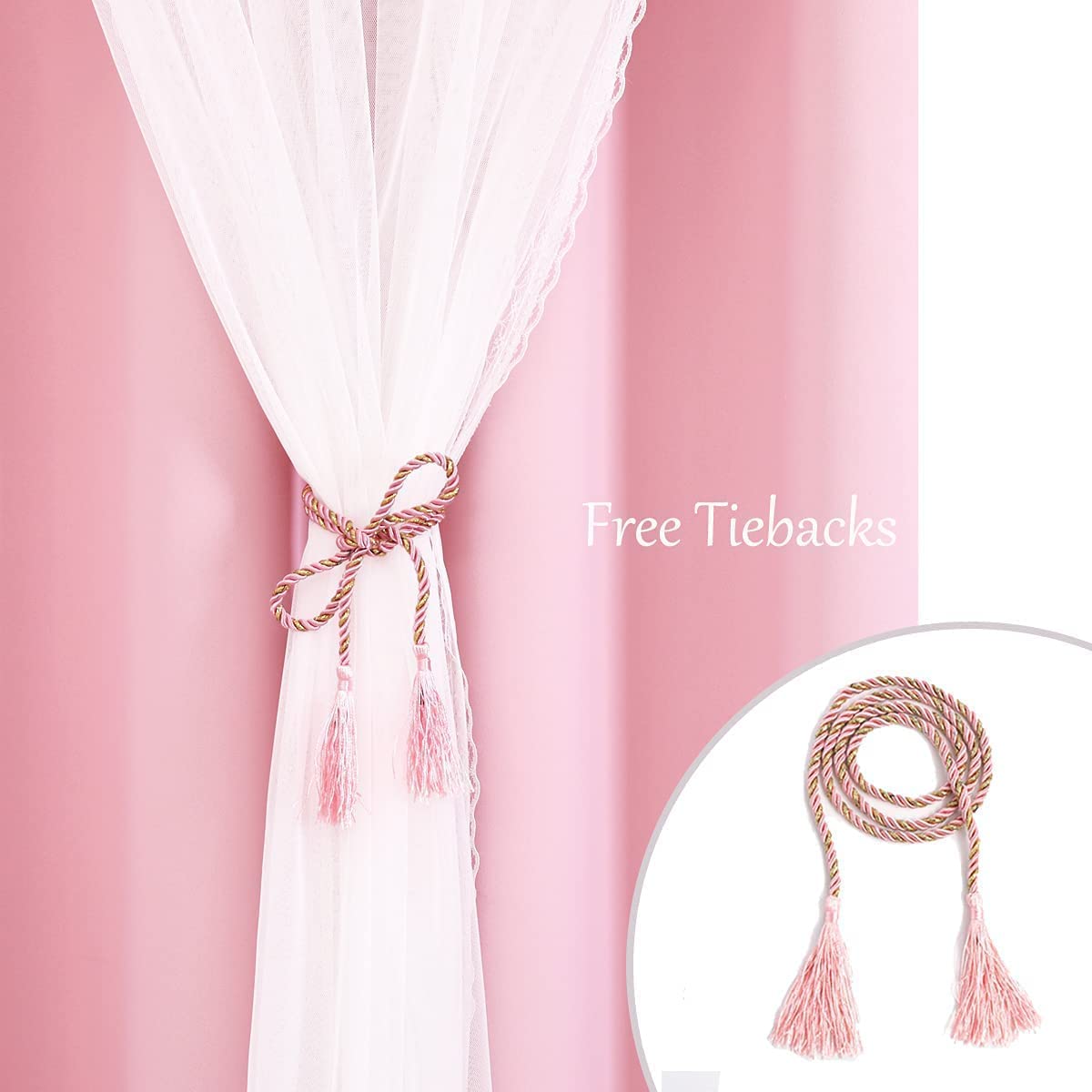 Sofjagetq Pink Double Layer Curtains 90 Inch Length- Mix And Match Pink Blackout Curtains With White Sheer Voile For Bedroom And