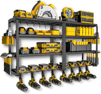 Power Tool Organizer, 8 Drill Holder Wall Mount, Storage Rack For Garage Organization, Heavy Duty Tool Racks And Battery Shelf, Tools Shelves With Charging Station