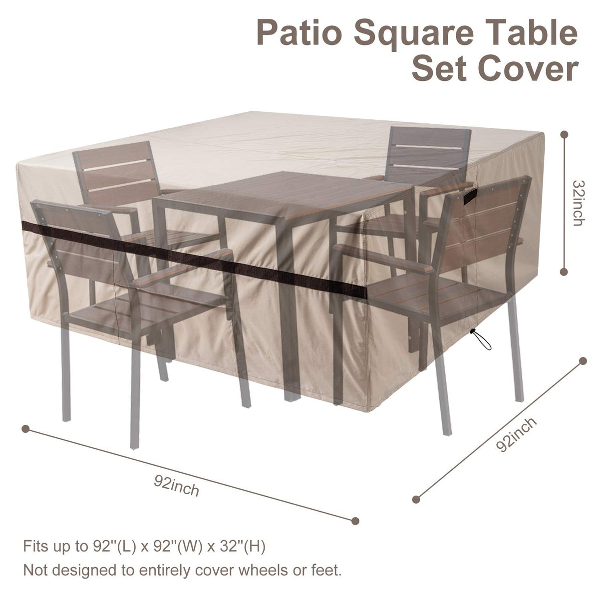 Heavy Duty Square Patio Furniture Covers Table And Chairs Easy To Use And Maintain. Patio Table Set Covers Have Interior Bound Seams For Strength, High-Density Stitching For Durability, Padded Handles For Comfort, Matching Webbing For A Great Look.