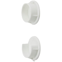 White, Plastic, Closet Pole Socket Set, For Wooden Clothes Poles Up To 1-3/8 Inch Diameter, Single Screw Mounting, White Styrene, Includes Screws, Carded.