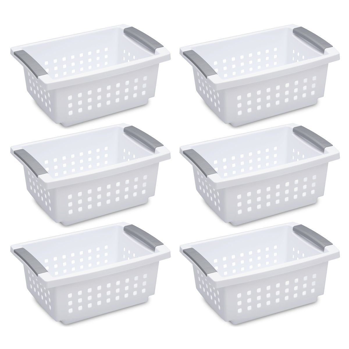 Sterilite 16608006 Small Stacking Basket, White Basket W/ Titanium Accents, 6-Pack