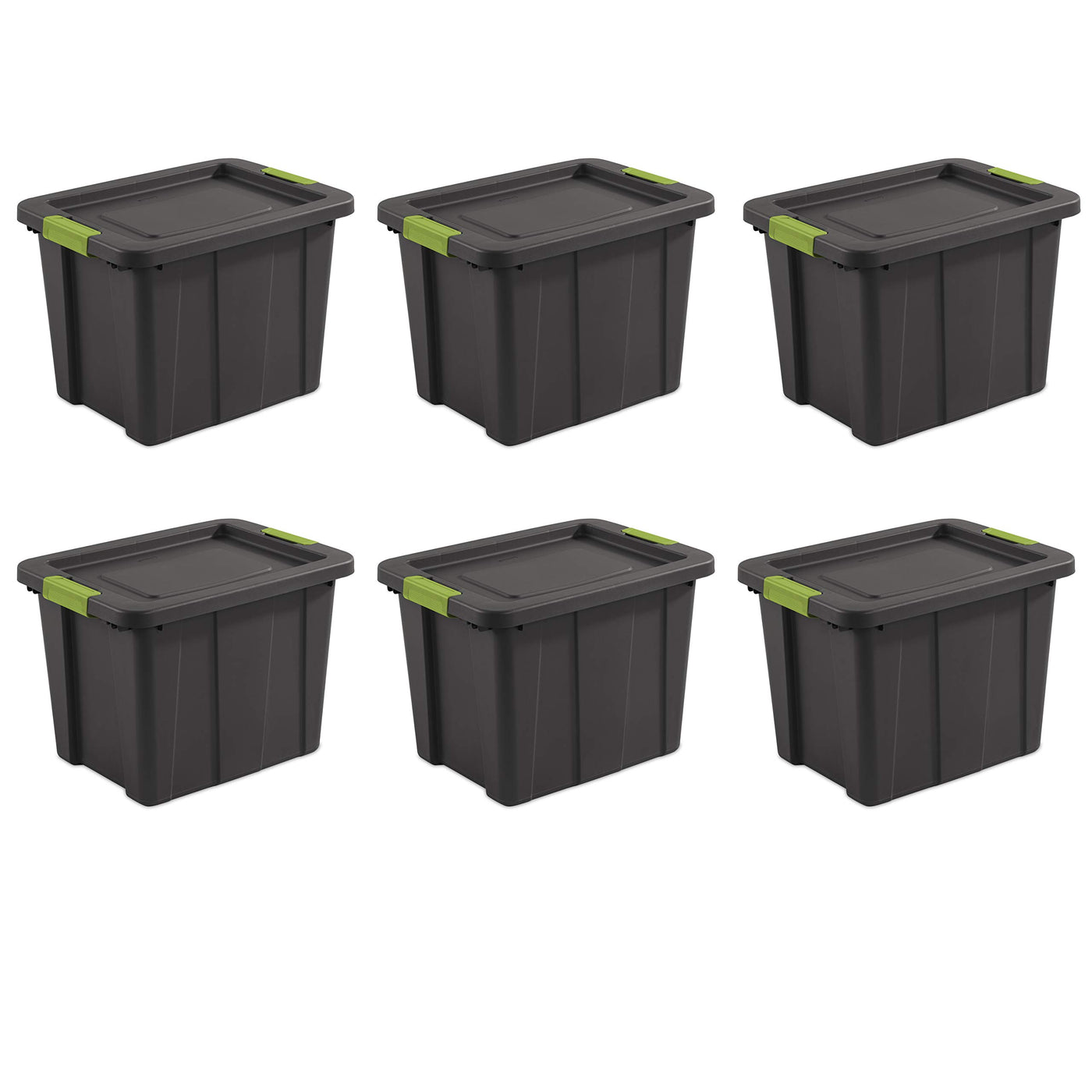 Q: How many Sterilite Tuff1 Totes are included in a pack?A: This product listing includes a pack of 6 Sterilite 18 Gal Latching Tuff1 Storage Totes, providing ample storage solutions for your garage, basement, or attic.