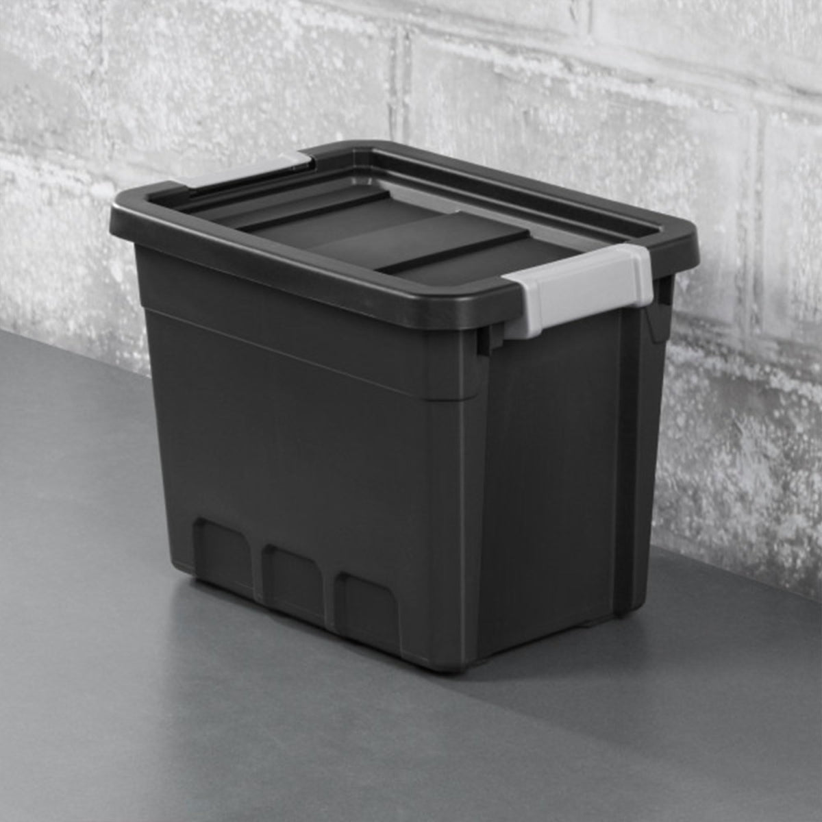 Q: Are the Sterilite storage containers stackable?A: Yes, the Sterilite storage bins are stackable. They feature latches that secure the lid to the base, ensuring safe and easy stacking for efficient use of space.