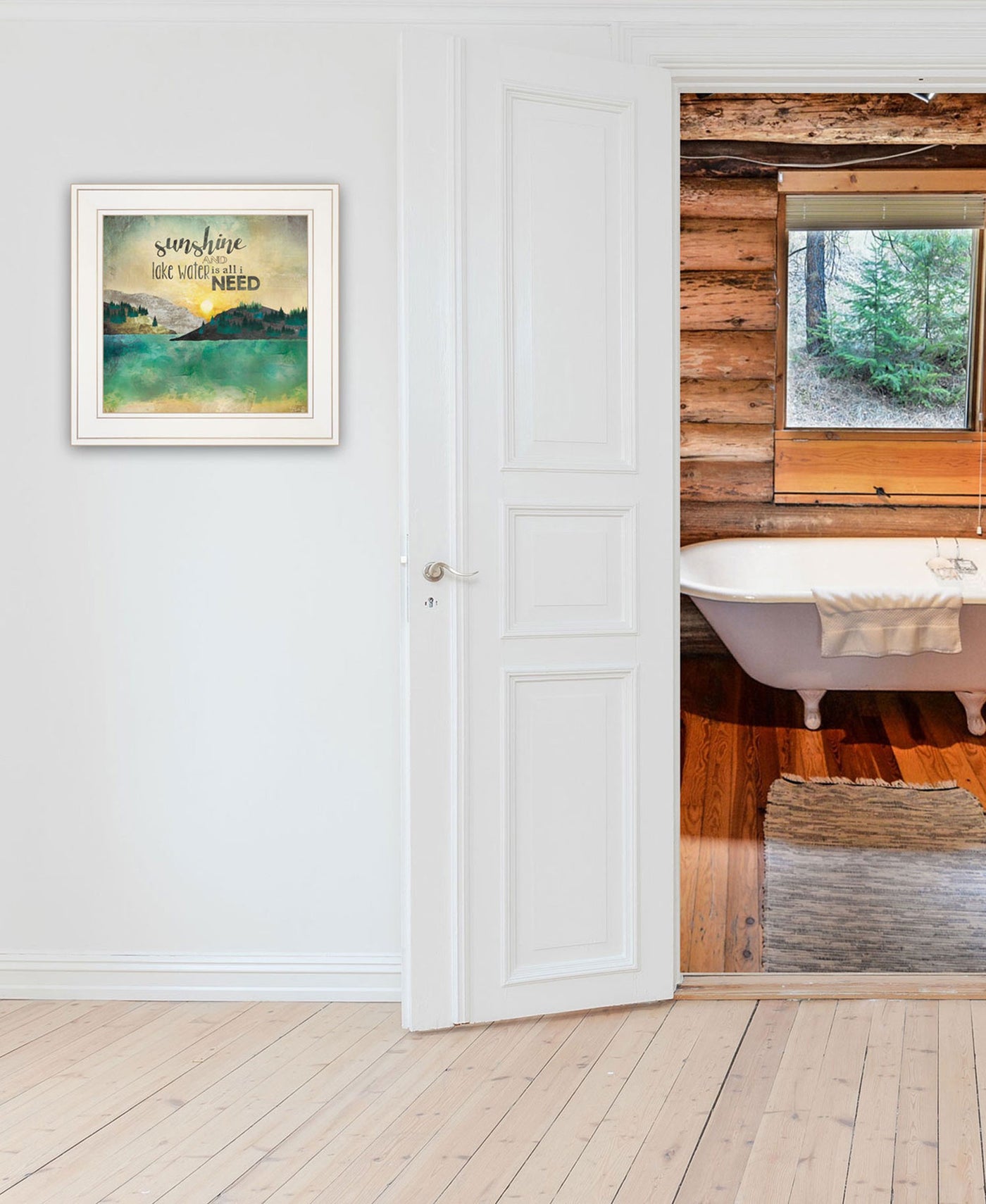 Bring some sizzle to your space with this eye-catching sunshine and lake water 2 white framed print wall art. This print is a visual artistic expression that allows you to decorate your space in style. Reproduced for you on wood, this hanging accent will be a trendy walls and fashionable way to dress your in a rustic and modern farmhouse vibe. Adding this hanging art to your space to make your room feel more attractive. your space with this art that brings color and dimension to your walls. 15' H x 15' W x 1' D.
