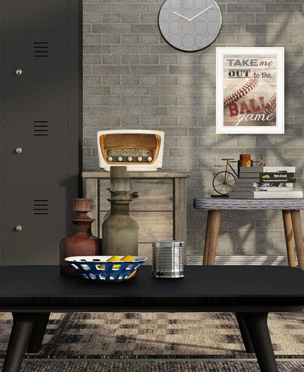 The take me out to the ball game 1 white framed print wall art is the perfect decorative accessory for your home. This print is a visual artistic expression that allows you to decorate your space in style. Reproduced for you on wood, this hanging accent will be a trendy and fashionable way to dress your walls in a rustic and modern farmvibe. Adding this hanging wall art to your space to make your room feel more finished and attractive. create a focal point in the room with this fabulous wall decor option. 19' H x 15' W x 1' D