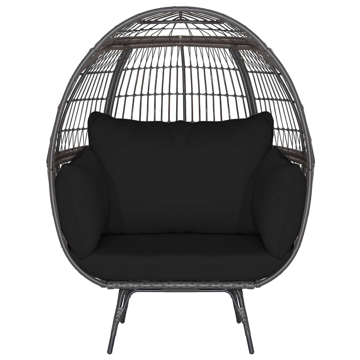 Tangkula Pe Wicker Egg Chair, Patiojoy Oversized Indoor Outdoor Patio Lounge Chair With Cushions And Pillows, Steel Frame Basket Chair For Garden, Deck, Balcony, Living Room (Black)