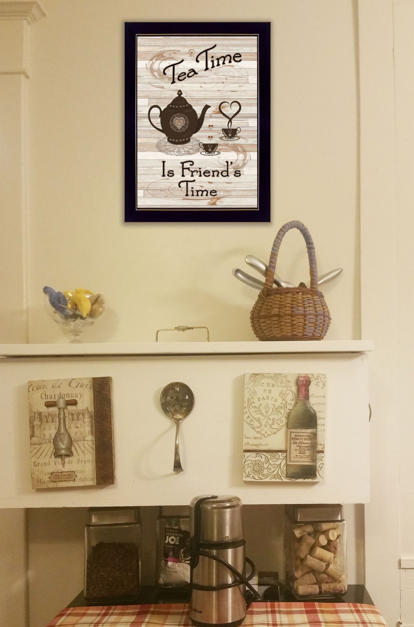 Unique and decorative, this tea time 3 black framed print wall art will leave a lasting impression. This wall art features a favorite hot beverage. Set the scene and add some fun decoration to your space with this tea art. This print is a visual artistic expression that allows you to decorate your space in reproduced for you on paper, this hanging accent will be a trendy and fashionable way to dress your walls. Adding this hanging wall art to your space to make your room. Feel more finished and attractive. e. Instantly liven up your space with this art that brings color and dimension to your wall. 14' H x 10' W x 1' D