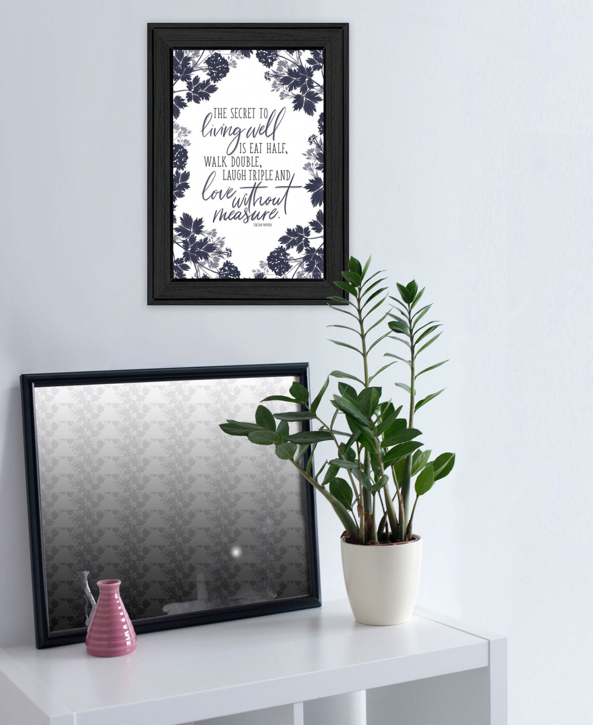 Bring some sizzle to your space with this eye-catching the secret to living well 2 black framed print wall art. This print is a visual artistic expression that allows you to decorate your space in style. Reproduced for you on wood, this hanging accent will be a trendy and fashionable way to dress your walls in a rustic and modern farmhouse vibe. Hang your wall to add some up to date fashion and Utilize this opportunity to create a focal point in the room with this wonderful wall decor option. 21' H x 15' W x 1' D