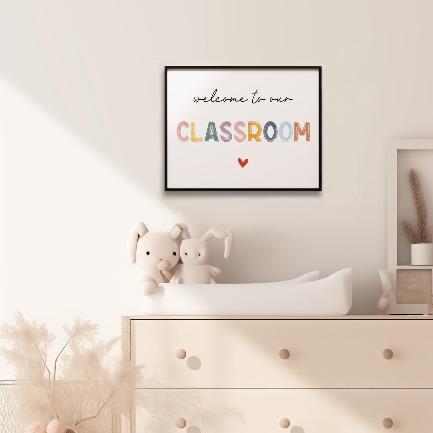 Q: Is The Welcome To Our Classroom Art Print suitable for a nursery or playroom?A: Yes, this art print is perfect for a nursery, playroom, or any children's room. Its boho design and educational theme make it an ideal addition to create a cozy and inspiring atmosphere.
