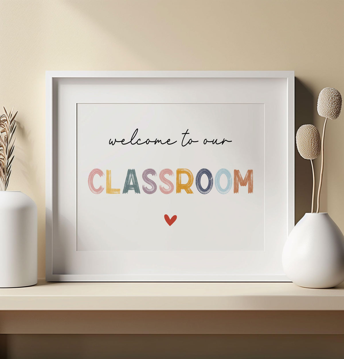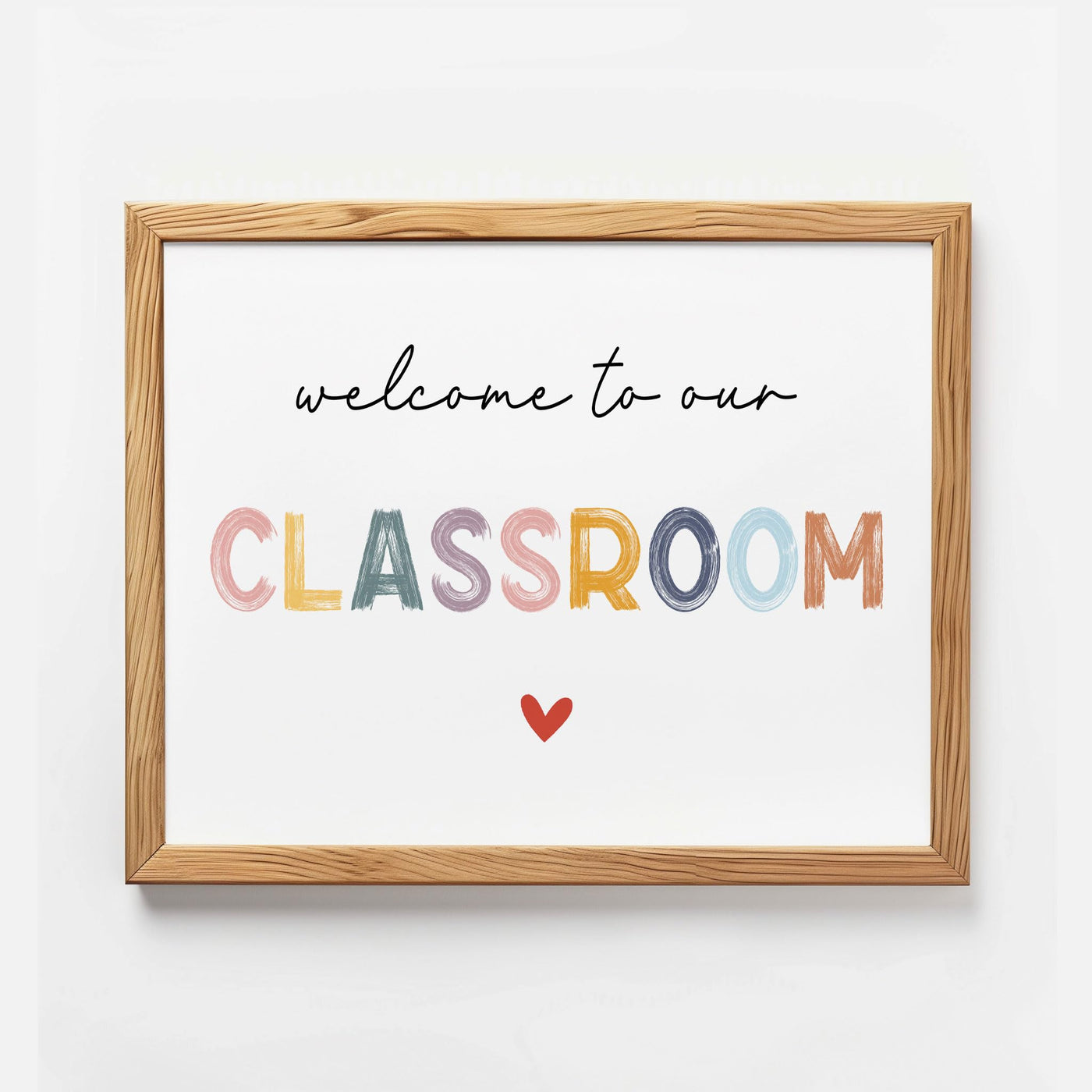 Q: How can I display The Welcome To Our Classroom Art Print?A: This art print is unframed, giving you the flexibility to personalize it with your favorite photo frames. It can complement various decor styles, including modern, classic, rustic, or bohemian.
