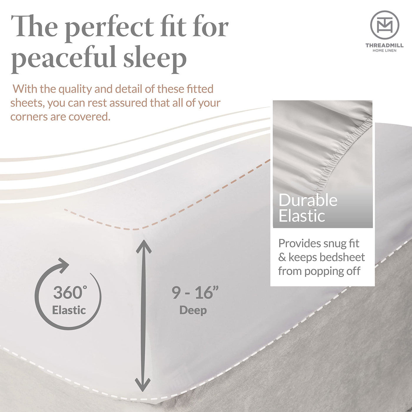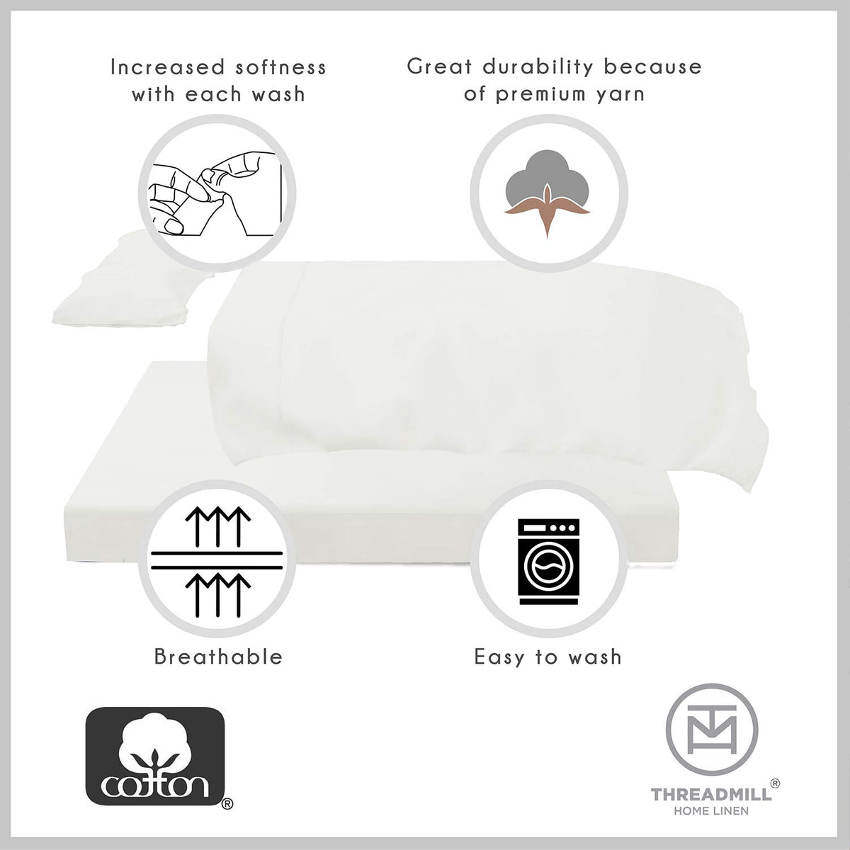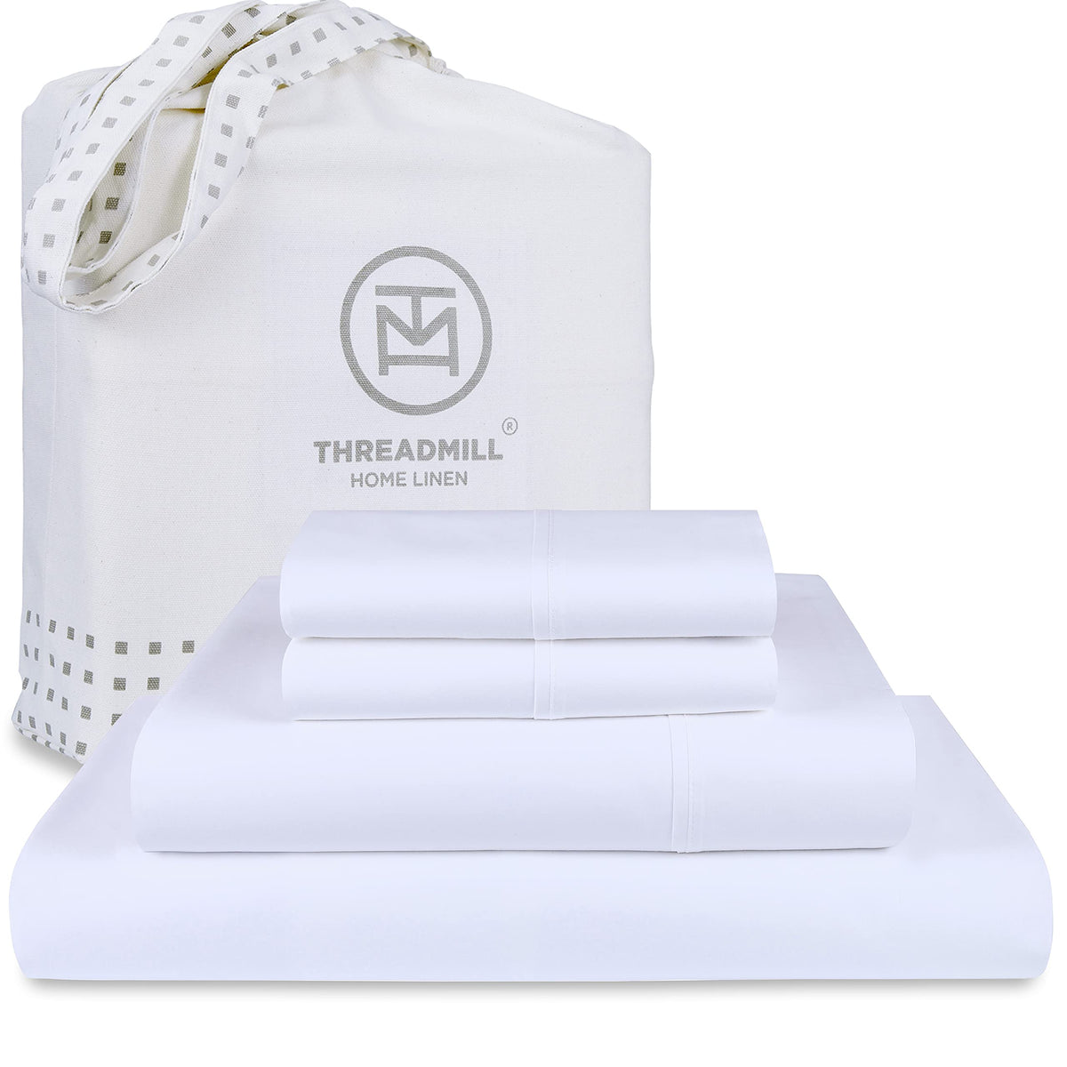 Threadmill 100% Cotton Hypoallergenic/Breathable/Stain-Resistant, 500 Thread Count, Solid 4-Piece Bed Sheet Set (1 Flat, 1 Fitte