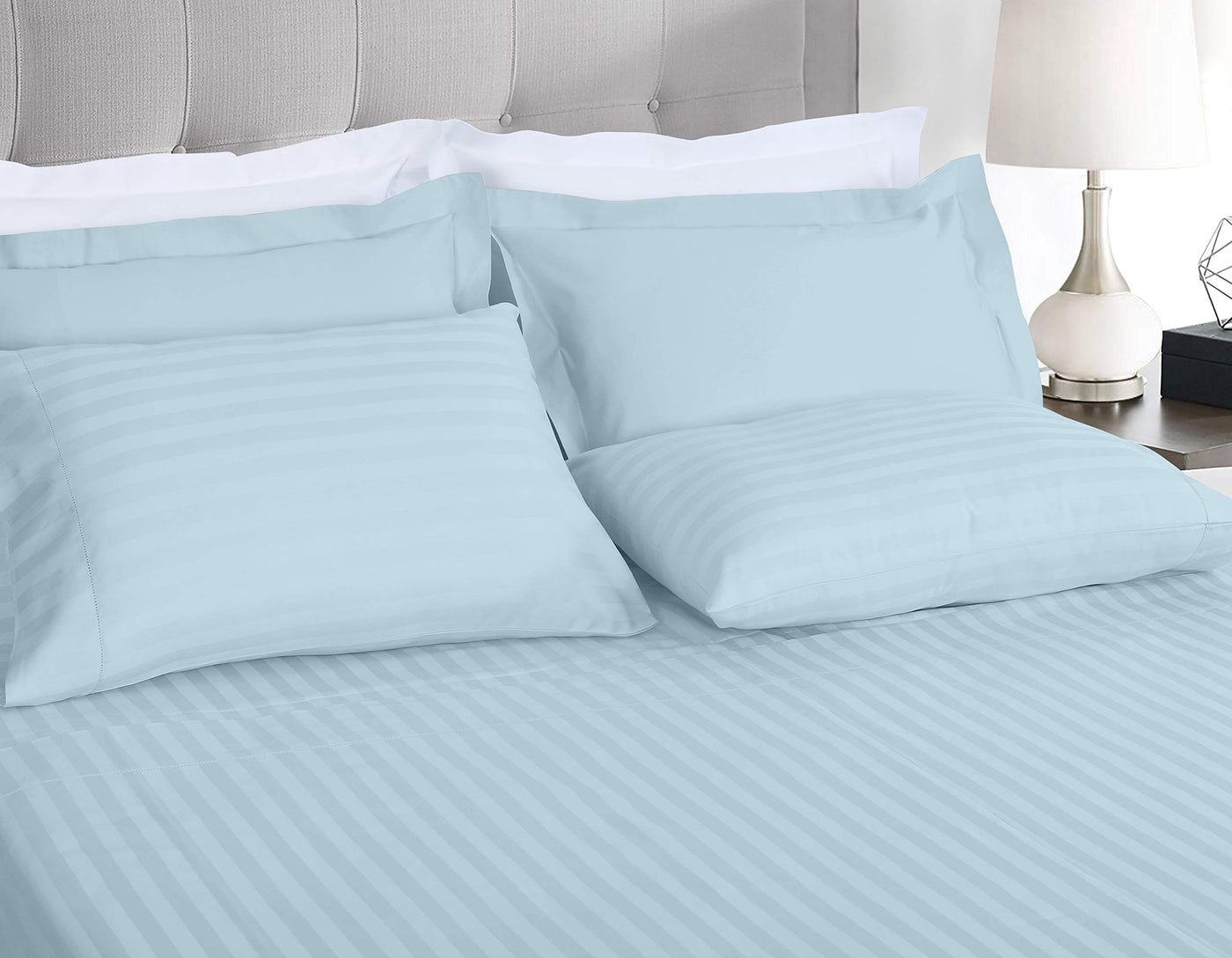 Threadmill 500 Thread Count Full Size Damask Stripe, 4 Pc Luxury Cotton Sheet Set, Breathable Light Blue Sheets With 16'' Elasti