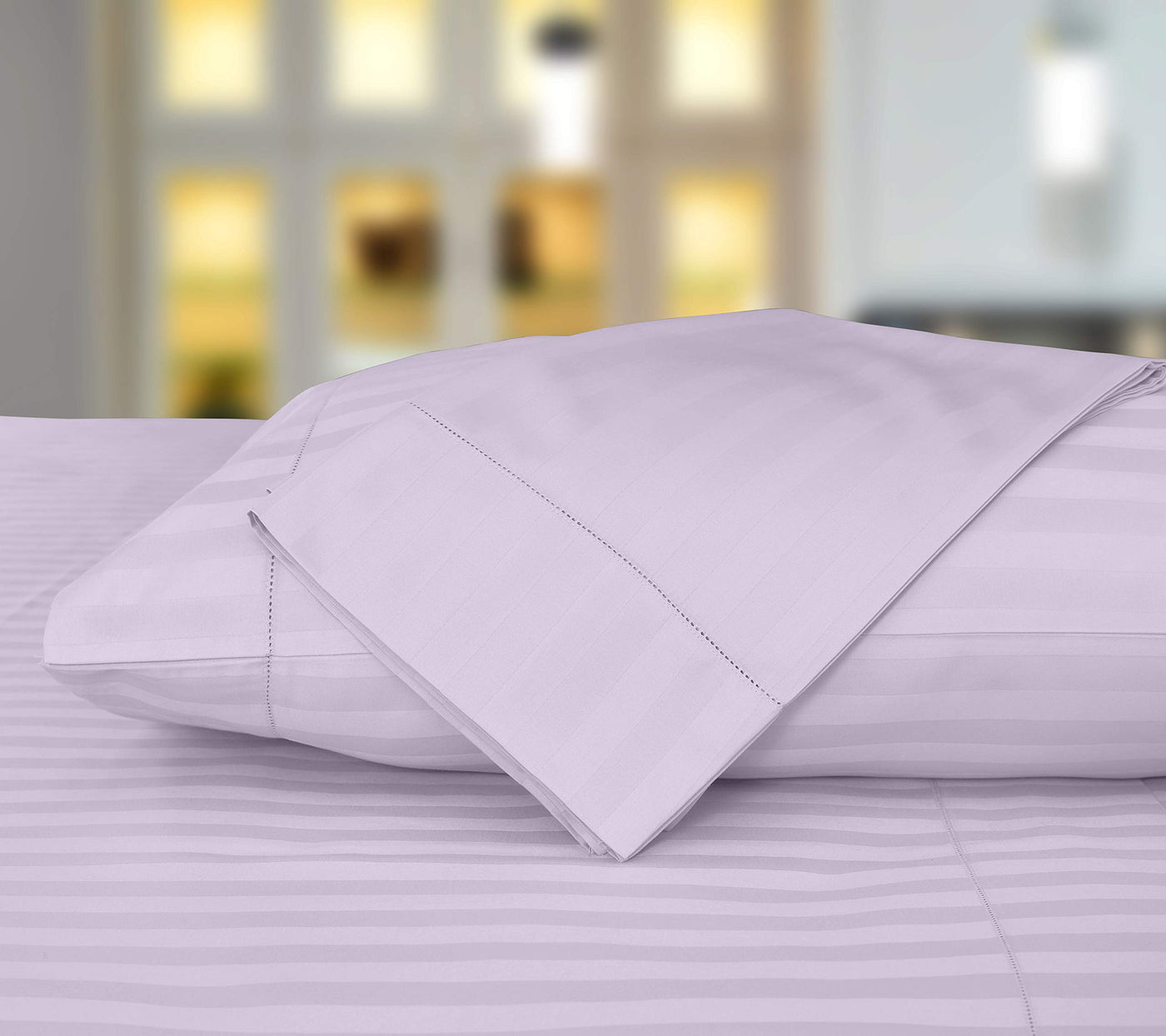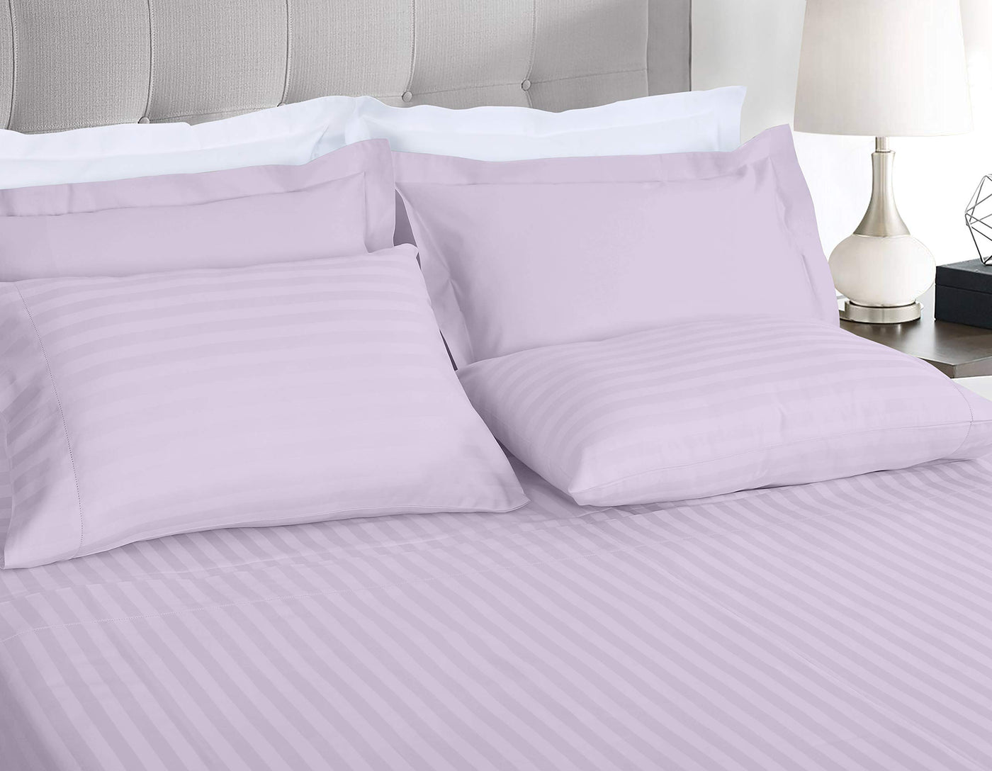 Threadmill 500 Thread Count King Size Damask Stripe, 4 Pc Luxury Cotton Bed Sheet Set, Silky Soft & Breathable Lilac Sheets With