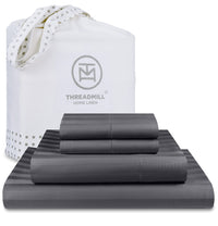 Threadmill 500 Thread Count King Size Damask Stripe, 4 Pc Luxury Cotton Sheet Set, Silky Soft & Breathable Dark Grey Sheets With