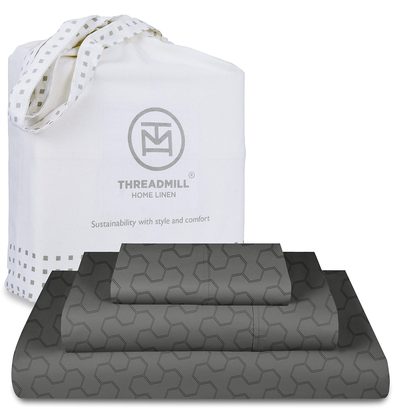 Feel The Comfort And Softness Of 100% Pure And Natural Cotton With Our Exclusive 500 Thread Count Bedding Set. Premium 500 Thread Count, Natural Cotton, & Smooth Jacquard Weave Relax In The Divine Combination Of Luxury, Comfort & Durability With Our 500 Thread Count Bed Sheets. Made Of 100% Natural Extra Long Staple Cotton Yarns, These Lightweight & Cooling Bed Linens Can Make Sleeping A Blissful Affair. The Deluxe Jacquard Weave Gives Them A Lustrous Shine & Silky Smooth Feel. They Offer Ultimate Breathability To Prevent Night Sweats, Making Them Ideal For All Seasons. 3 Piece Sheet Set With Perfectly Fitting Deep Pocket Bottom Sheet From New Bedroom To Guest Room, This Complete Sheet Set Can Be Used To Complement All Your Home Decor. Each Bedding Set Includes 1 Fitted Sheet, 1 Flat Sheet, & 1 Standard Pillowcase. Sleep Without Any Worry Of Bunched Up Sheets With Our Elasticized Fitted Sheet. Its Generously Sized Deep Pocket Snugly Fits Even The Tallest Of Mattresses. Easy To Care, High Quality, & Diligent Craftsmanship Enjoy Sleeping On A Bedsheet That Gets Softer & Resists Fading With Every Wash. To Give You Absolute Quality & Durability With Each Sheet, The Fabric Is Expertly Woven & Stitched Together. Made Using Extra Long Staple Cotton Yarns, These Sheets Have No Loose Fibers After Regular Washes. These Machine Washable Sheets Must Be Tumble Dried On Low & Folded Right After To Prevent Wrinkles. Certified & Sustainable Practices Because We Care At Threadmill Home Linen, We Manufacture The Highest Quality Of Products In A Sustainable Manner. All Our Products & Practices Are Oeko Tex Certified For Your Safety & Trust. We Show Our Care For The Planet By Powering Our State-Of-The-Art Factory With Wind & Solar Energy. These Sheets Are Packed In Reusable Cotton Tote Bags To Prevent The Use Of Plastic. Along With Luxury & Quality, Our Products Also Come With A 100% Satisfaction Guarantee.