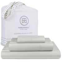 Feel The Comfort And Softness Of 100% Pure And Natural Cotton With Our Exclusive 500 Thread Count Bedding Set. Premium 500 Thread Count, Natural Cotton, & Smooth Damask Weave Relax In The Divine Combination Of Luxury, Comfort And Durability With Our 500 Thread Count Bed Sheets. Made Of 100% Natural Extra Long Staple Cotton Yarns, These Lightweight & Cooling Bed Linens Can Make Sleeping A Blissful Affair. The Deluxe Damask Weave Gives Them A Lustrous Shine & Silky Smooth Feel. They Offer Ultimate Breathability To Prevent Night Sweats, Making Them Ideal For All Seasons. 3 Piece Sheet Set With Perfectly Fitting Deep Pocket Bottom Sheet From New Bedroom To Guest Room, This Complete Sheet Set Can Be Used To Complement All Your Home Decor. Each Bedding Set Includes 1 Fitted Sheet, 1 Flat Sheet, & 1 Standard Pillowcase. Sleep Without Any Worry Of Bunched Up Sheets With Our Elasticized Fitted Sheet. Its Generously Sized Deep Pocket Snugly Fits Even The Tallest Of Mattresses. Easy To Care, High Quality, & Diligent Craftsmanship Enjoy Sleeping On A Bedsheet That Gets Softer & Resists Fading With Every Wash. To Give You Absolute Quality & Durability With Each Sheet, The Fabric Is Expertly Woven & Stitched Together. Made Using Extra Long Staple Cotton Yarns, These Sheets Have No Loose Fibers After Regular Washes. These Machine Washable Sheets Must Be Tumble Dried On Low & Folded Right After To Prevent Wrinkles. Certified & Sustainable Practices Because We Care At Threadmill Home Linen, We Manufacture The Highest Quality Of Products In A Sustainable Manner. All Our Products & Practices Are Oeko Tex Certified For Your Safety & Trust. We Show Our Care For The Planet By Powering Our State-Of-The-Art Factory With Wind & Solar Energy. These Sheets Are Packed In Reusable Cotton Tote Bags To Prevent The Use Of Plastic. Along With Luxury And Quality, Our Products Also Come With A 100% Satisfaction Guarantee.