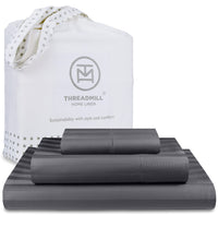 Threadmill 500 Thread Count Twin Size Damask Stripe, 3 Pc Luxury Cotton Bedding Set, Breathable & Silky Soft Dark Grey Sheets Wi