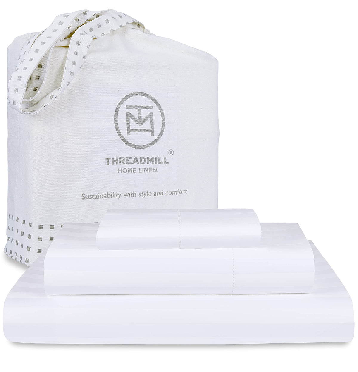 Feel The Comfort And Softness Of 100% Pure And Natural Cotton With Our Exclusive 500 Thread Count Bedding Set. Premium 500 Thread Count, Natural Cotton, & Smooth Damask Weave Relax In The Divine Combination Of Luxury, Comfort And Durability With Our 500 Thread Count Bed Sheets. Made Of 100% Natural Extra Long Staple Cotton Yarns, These Lightweight & Cooling Bed Linens Can Make Sleeping A Blissful Affair. The Deluxe Damask Weave Gives Them A Lustrous Shine & Silky Smooth Feel. They Offer Ultimate Breathability To Prevent Night Sweats, Making Them Ideal For All Seasons. 3 Piece Sheet Set With Perfectly Fitting Deep Pocket Bottom Sheet From New Bedroom To Guest Room, This Complete Sheet Set Can Be Used To Complement All Your Home Decor. Each Bedding Set Includes 1 Fitted Sheet, 1 Flat Sheet, & 1 Standard Pillowcase. Sleep Without Any Worry Of Bunched Up Sheets With Our Elasticized Fitted Sheet. Its Generously Sized Deep Pocket Snugly Fits Even The Tallest Of Mattresses. Easy To Care, High Quality, & Diligent Craftsmanship Enjoy Sleeping On A Bedsheet That Gets Softer & Resists Fading With Every Wash. To Give You Absolute Quality & Durability With Each Sheet, The Fabric Is Expertly Woven & Stitched Together. Made Using Extra Long Staple Cotton Yarns, These Sheets Have No Loose Fibers After Regular Washes. These Machine Washable Sheets Must Be Tumble Dried On Low & Folded Right After To Prevent Wrinkles. Certified & Sustainable Practices Because We Care At Threadmill Home Linen, We Manufacture The Highest Quality Of Products In A Sustainable Manner. All Our Products & Practices Are Oeko Tex Certified For Your Safety & Trust. We Show Our Care For The Planet By Powering Our State-Of-The-Art Factory With Wind & Solar Energy. These Sheets Are Packed In Reusable Cotton Tote Bags To Prevent The Use Of Plastic. Along With Luxury And Quality, Our Products Also Come With A 100% Satisfaction Guarantee.