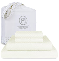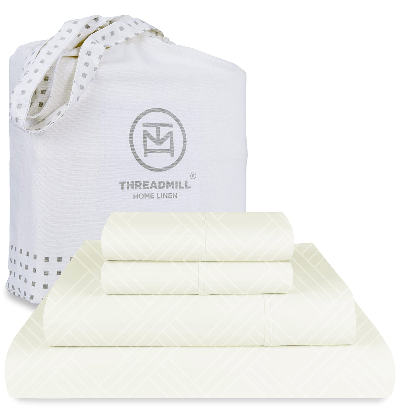 Slip Into A Blissful Nights Sleep With The Luxurious Touch Of Our 800 Thread Count Cotton Sheet Set. 100% Natural Cotton, Luxurious 800 Thread Count & Elegant Jacquard Celine Damask Experience The Softness Of Pure And Natural Cotton With Our Premium Quality High Thread Count Sheets. With 800 Threads Woven Per Square Inch, Our Royale Bedding Set Offers Undeniable Comfort, Smoothness, And Durability. Perfect For Hot Sleepers, The 100% Natural Cotton Makes The Bed Sheets And Pillowcases Extremely Breathable While The Jacquard Celine Damask Adds A Lustrous Sheen. 4 Piece Sheet Set With Elasticized Deep Pocket Fitted Sheet Add A Dash Of Luxury To Your Bedroom Decor With Our Superior Quality Bedding. Each Bed Set Includes 1 Fitted Sheet, 1 Flat Sheet, And 2 Pillowcases. Tall Mattresses Or Pillow-Top, Our Extra Deep Pocket Sheets Perfectly Fits All Mattresses. The All-Around Elastic Ensures The Bottom Sheet Stays Intact Throughout The Night. Superior Quality & Machine Washable For Your Comfort Each Fabric Is Expertly Woven And Stitched Together To Ensure No Pilling And Long-Lasting Strength. With Every Wash, Our Bedsheets Get Softer And Softer While Resisting Fading. The Extra Long Staple Cotton Yarns Also Ensures There Are No Loose Fibers After Regular Washes. We Recommend Machine Washing The Sheets At Room Temperature And Tumble Dry On Low. To Avoid Wrinkles, Remove The Bed Linens From The Dryer Immediately After Drying And Fold Them Neatly Until Next Use. Certified & Sustainable Practices Because We Care At Threadmill Home Linens, We Manufacture The Highest Quality Of Products In A Sustainable Manner. All Our Products And Practices Are Oeko Tex Certified For Your Safety And Trust. We Show Our Care For The Planet By Powering Our State-Of-The-Art Factory With Wind And Solar Energy. These Sheets Are Packed In Reusable Cotton Tote Bags To Prevent The Use Of Plastic.