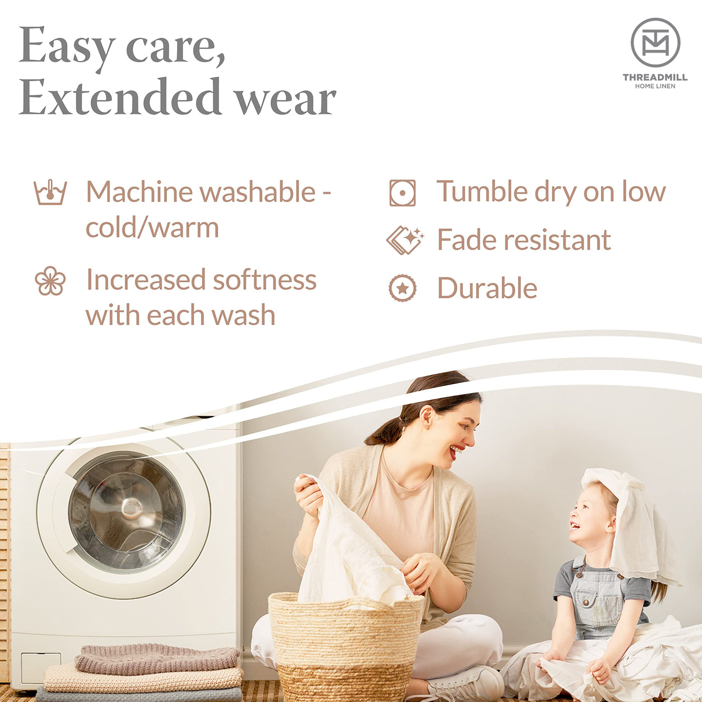 Q: How should I care for my Threadmill Cotton sheets to ensure longevity?A: To maintain the quality of your Threadmill Cotton sheets, machine wash them at room temperature and tumble dry on low. To avoid wrinkles, remove the sheets promptly after drying and fold them neatly.