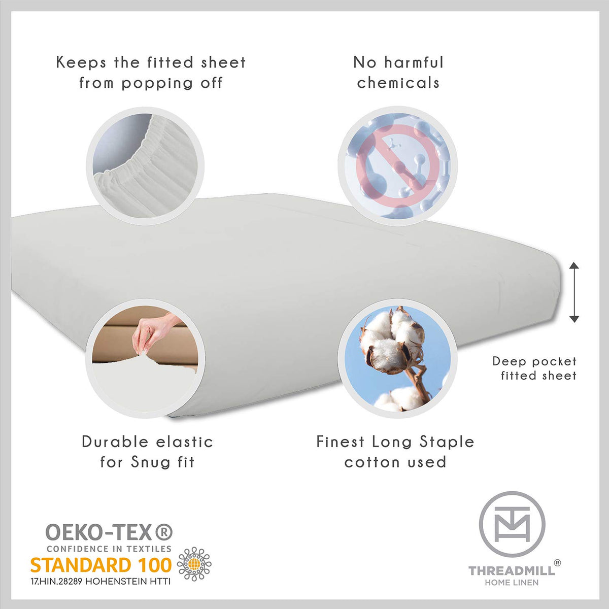 Q: Are the Threadmill Cotton Twin Sheets suitable for tall or pillow-top mattresses?A: Yes, the fitted sheet of the Threadmill Cotton Twin Sheets Set features a deep pocket design with all-around elastic, making it ideal for both tall and pillow-top mattresses, ensuring a snug fit.