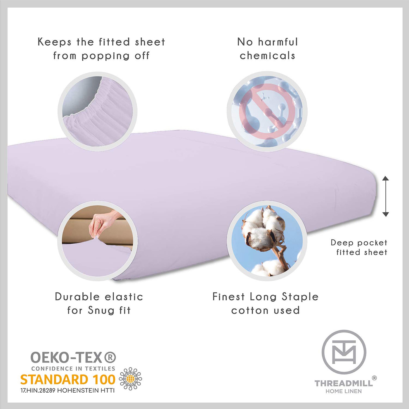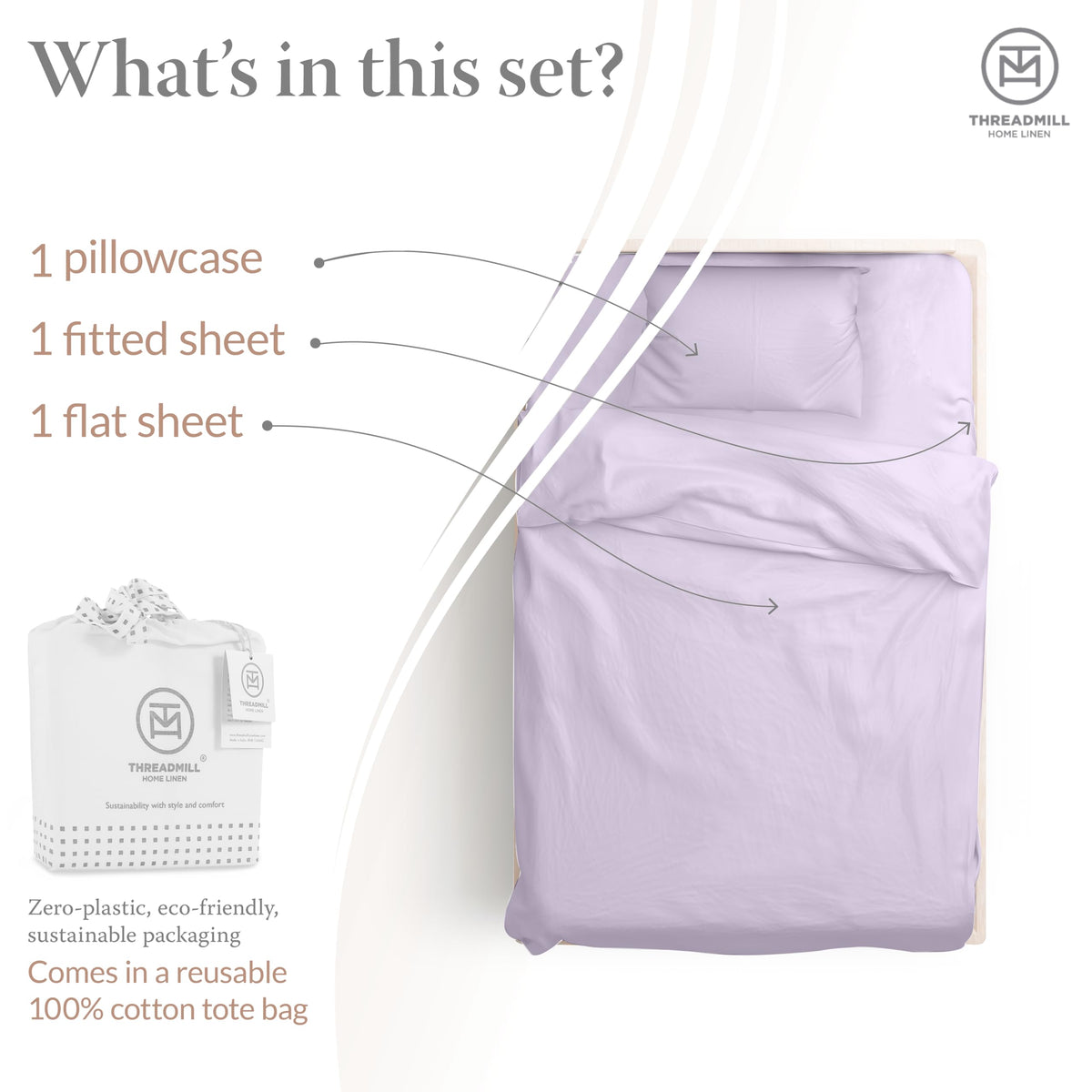 Q: What materials are used in the Threadmill Cotton Twin XL Sheets Set?A: The Threadmill Cotton Twin XL Sheets Set is made from 100% pure cotton with a solid sateen weave, ensuring ultimate softness and breathability.
