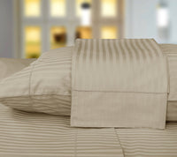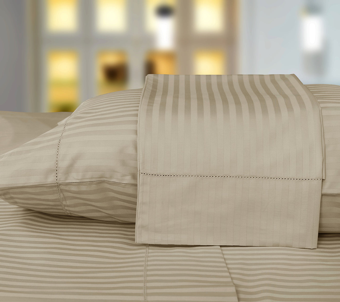 Threadmill Home Linen Luxury King Size Pillow Cases - 100% Natural Cotton 600 Thread Count, 2 Piece Damask Stripe Beige Pillow C
