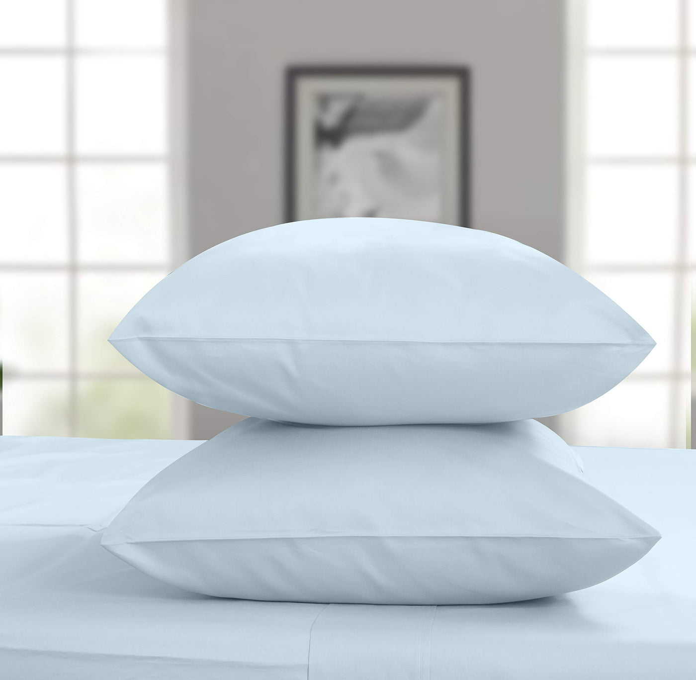 Threadmill Home Linen Standard Pillowcase - 100% Pure Cotton 600 Thread Count, 2 Piece Sateen Weave Blue Pillow Cover Set, Silky