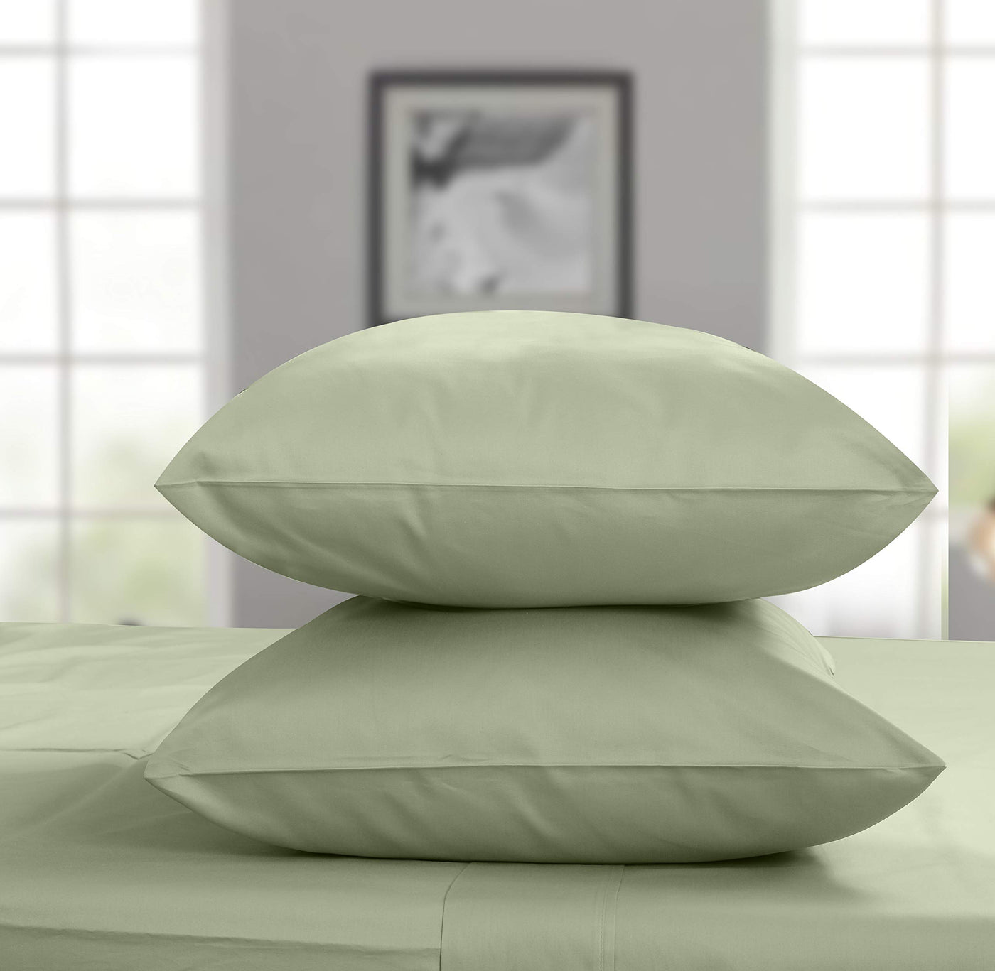 Threadmill Home Linen Standard Pillowcase - 100% Pure Cotton 600 Thread Count, 2 Piece Sateen Weave Sage Pillow Cover Set, Silky