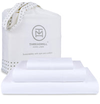 Slip Into A Blissful Nights Sleep With The Luxurious Touch Of Our 800 Thread Count Cotton Sheet Set. 100% Natural Cotton, Luxurious 800 Thread Count & Smooth Sateen Weave Experience The Softness Of Pure And Natural Cotton With Our Premium Quality High Thread Count Sheets. With 800 Threads Woven Per Square Inch, Our Royale Bedding Set Offers Undeniable Comfort, Smoothness, And Durability. Perfect For Hot Sleepers, The 100% Natural Cotton Makes The Bed Sheets And Pillowcases Extremely Breathable While The Sateen Weave Adds A Lustrous Sheen. 3 Piece Sheet Set With Elasticized Deep Pocket Fitted Sheet Add A Dash Of Luxury To Your Bedroom Decor With Our Superior Quality Bedding. Each Bed Set Includes 1 Fitted Sheet, 1 Flat Sheet, And 1 Pillowcase. Tall Mattresses Or Pillow-Top, Our Extra Deep Pocket Sheets Perfectly Fit All The Mattresses. The All-Around Elastic Ensures The Bottom Sheet Stays Intact Throughout The Night. Superior Quality & Machine Washable For Your Comfort Each Fabric Is Expertly Woven And Stitched Together To Ensure No Pilling And Long-Lasting Strength. With Every Wash, Our Bedsheets Get Softer And Softer While Resisting Fading. The Use Of Extra Long Staple Cotton Yarns Also Ensures There Are No Loose Fibers After Regular Washes. We Recommend Machine Washing The Sheets At Room Temperature And Tumble Dry On Low. To Avoid Wrinkles, Remove The Bed Linens From The Dryer Immediately After Drying And Fold Them Neatly Until Next Use. Certified & Sustainable Practices Because We Care At Threadmill Home Linens, We Manufacture The Highest Quality Of Products In A Sustainable Manner. All Our Products And Practices Are Oeko Tex Certified For Your Safety And Trust. We Show Our Care For The Planet By Powering Our State-Of-The-Art Factory With Wind And Solar Energy. These Sheets Are Packed In Reusable Cotton Tote Bags To Prevent The Use Of Plastic.