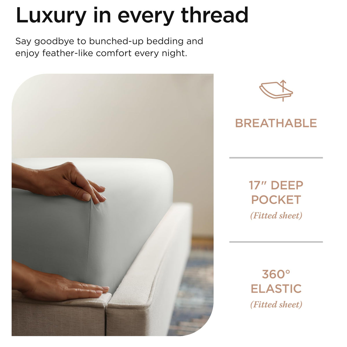Threadmill Luxury Supima Cotton Sheets, 1000 Thread Count Soft 100% Cotton Sheets For King Size Bed, 4 Pc Light Grey King Bed Sh