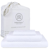 Q: What are the eco-friendly features of the Threadmill bed sheets?A: Threadmill bed sheets are produced with sustainable practices, earning OEKO TEX certification which ensures they are free from harmful chemicals. Additionally, the manufacturing process uses wind and solar energy, and the sheets are packaged in reusable cotton tote bags, minimizing plastic use.