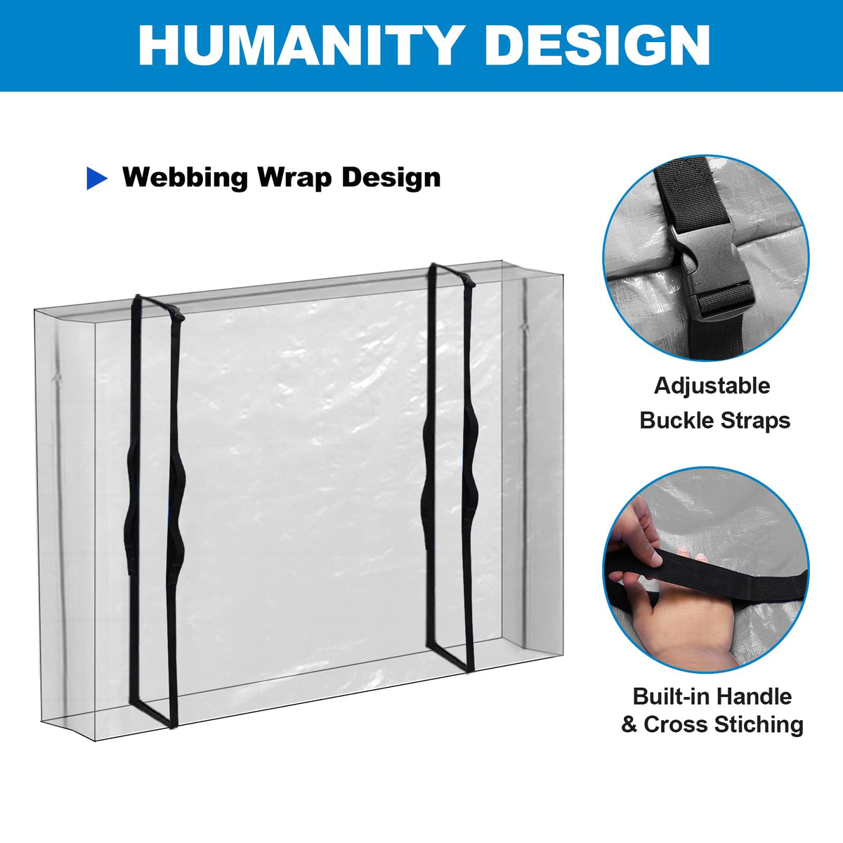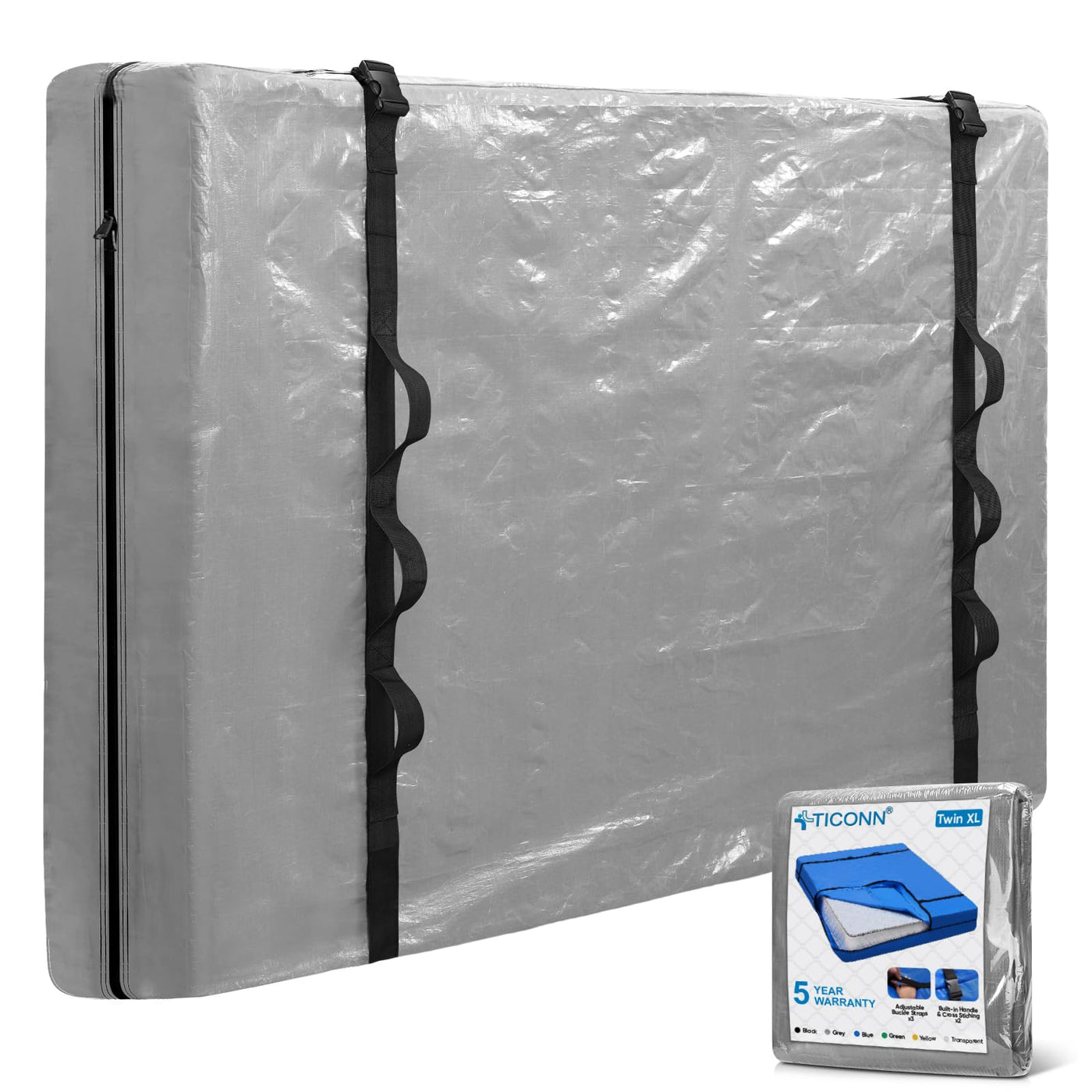 Ticonn Mattress Bags For Moving, Twin Xl Mattress Cover For Moving, Heavy Duty, Full-Around Handle With Adjustable Buckles, Mattress Storage Bag & Moving Supplies (Gray, Twin Xl)