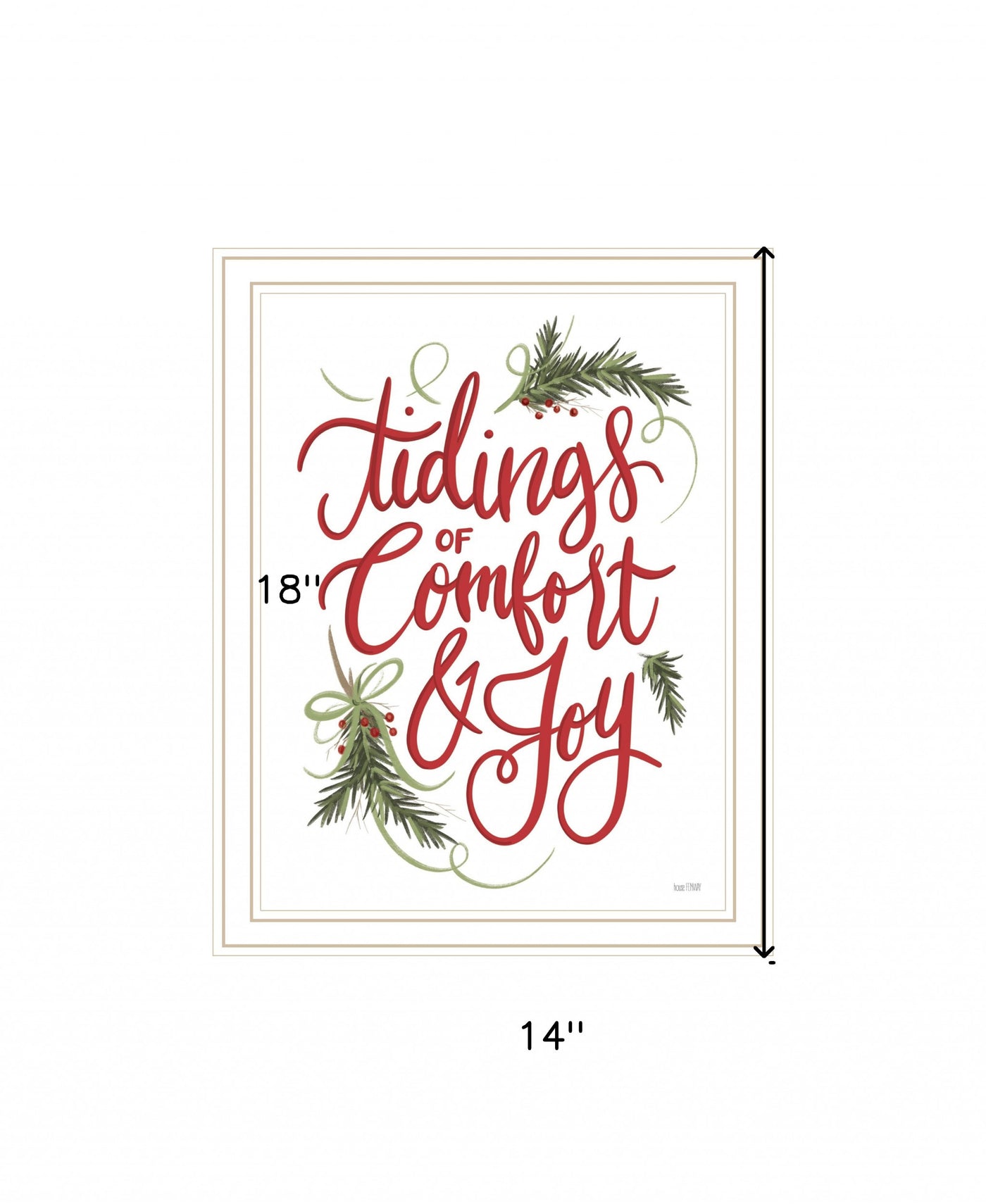 Bring some sizzle to your space with this eye-catching tidings of comfort & joy 1 white framed print wall art. This print is a visual artistic expression that allows you to decorate your space in style. Reproduced for you on wood, this hanging accent will be a trendy and fashionable way to dress your walls in a rustic and modern farmhouse vibe. Adding this hanging wall art to your space feel more attractive. opportunity to create a focal point in the room with this wonderful wall decor option. 18' H x 14' W x 1' D