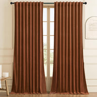 Timeper 96 Inches Burnt Orange Velvet Curtains Luxury Heavy Thick Super Soft Room Darkening Window Drapes For Living Room/Slidin