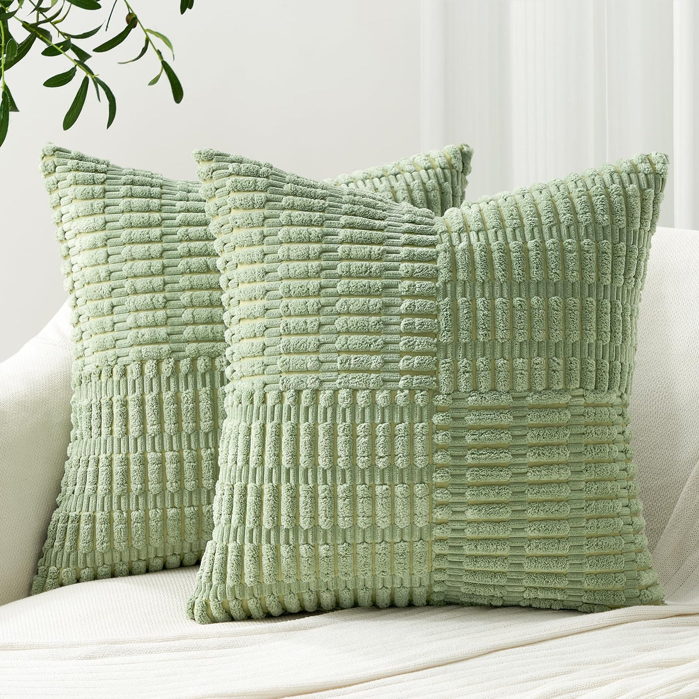 Topfinel 20X20 Inch Decorative Throw Pillow Covers Soft Corduroy Boho Stripe Textured Sage Green Pillow Covers Set Of 2 Spring F