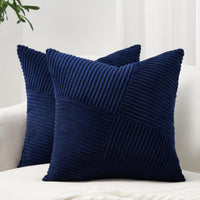 Topfinel Blue Decorative Throw Pillow Covers 12X12 Inch Cute Boho Stripe Soft Corduroy Modern Farmhouse Spring Home Decor 2 Pack