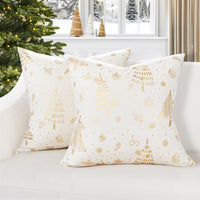 Topfinel Christmas Pillowcases 18X18 Inches Set Of 2, Xmas Tree Gold Brozing Lumbar Pillow Cover Christmas Cream Velvet Cushion