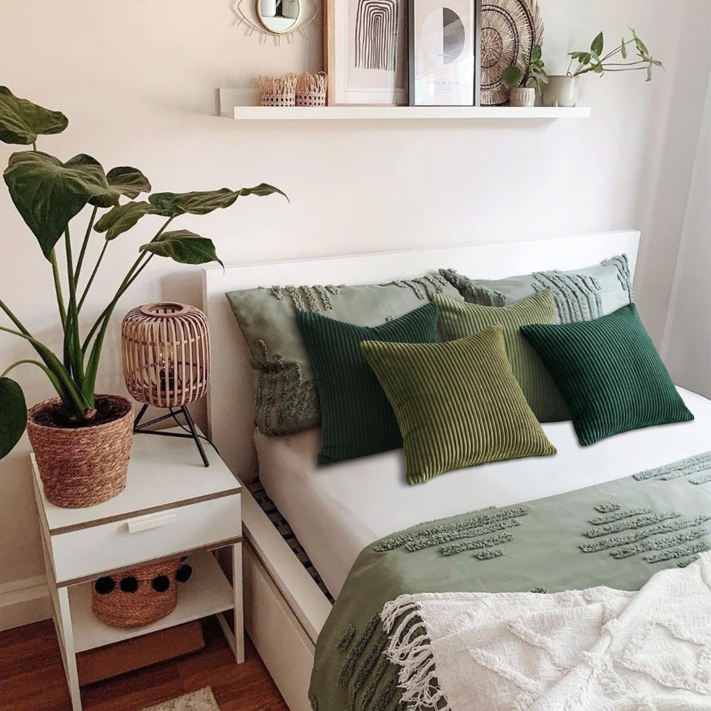 Topfinel Summer Throw Pillow Covers 16X16 Inch Set Of 4,Soft Boho Corduroy Striped Decorative Cushion Cover,Olive Green And Emerald Green Gradient Rustic Pillow Case For Sofa,Couch,Living Room,Bedroom