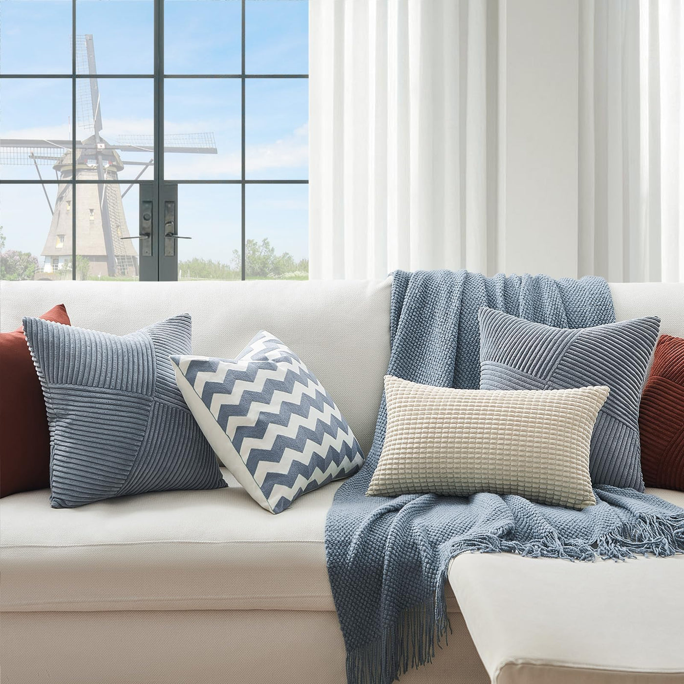 Topfinel Dusty Blue Throw Pillow Covers 20X20 Set Of 2, Soft Corduroy Couch Decorative Pillow Covers Windmill Textured Striped P