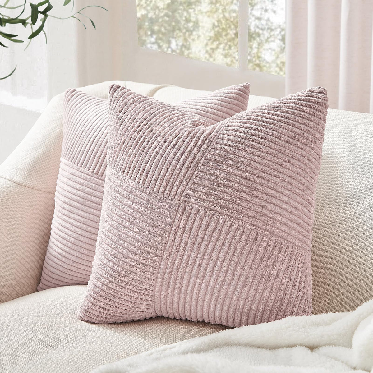 Topfinel Corduroy Decorative Pillow Covers 16X16 Inches Set Of 2 Blush Pink Neutral Square Throw Pillow Covers For Couch Sofa Bed Car Light Pink Soft Corduroy Striped Patchwork Pillow Covers 40X40Cm Pastel Pink Windmill Textured Cushion Covers For Bedroom Living Room Hallway Dining Room Office Cafe Pale Pink Cute Aesthetic Throw Pillow Covers Modern Farmhosue Boho Accent Home Decor