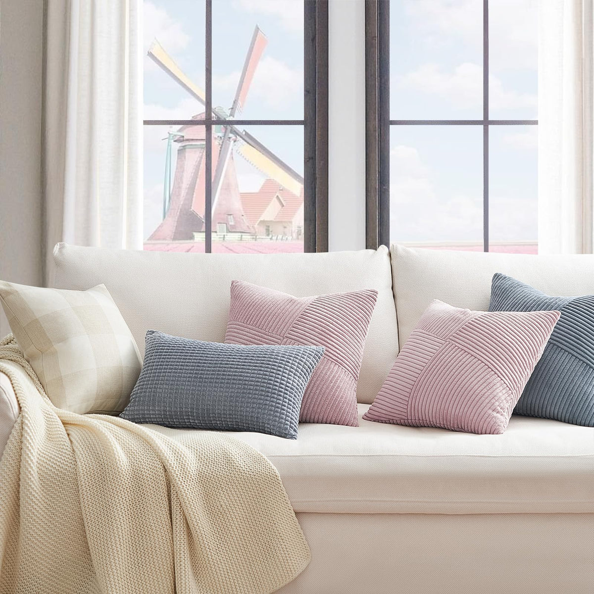 Topfinel Corduroy Decorative Pillow Covers 12X12 Inches Set Of 2 Blush Pink Neutral Square Throw Pillow Covers For Couch Sofa Bed Car Light Pink Soft Corduroy Striped Patchwork Pillow Covers 30X30Cm Pastel Pink Windmill Textured Cushion Covers For Bedroom Living Room Hallway Dining Room Office Cafe Pale Pink Cute Aesthetic Throw Pillow Covers Modern Farmhosue Boho Accent Home Decor