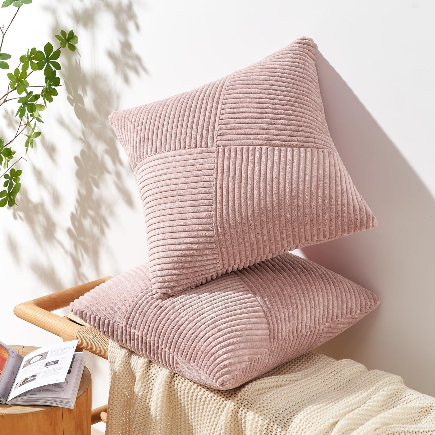 Topfinel Corduroy Decorative Pillow Covers 20X20 Inches Set Of 2 Pink Neutral Square Throw Pillow Covers For Couch Sofa Bed Car Dusty Rose Soft Corduroy Striped Patchwork Pillow Covers 50X50Cm Windmill Textured Cushion Covers For Bedroom Living Room Hallway Dining Room Office Cafe Cute Aesthetic Throw Pillow Covers Modern Farmhosue Boho Accent Home Decor