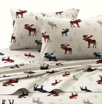 Tribeca Living 100% Cotton Flannel Sheet Set - Deep Pocket, 170-Gsm, Ultra Soft & Cozy Bedding For Winter, Cal King, Plaid Moose