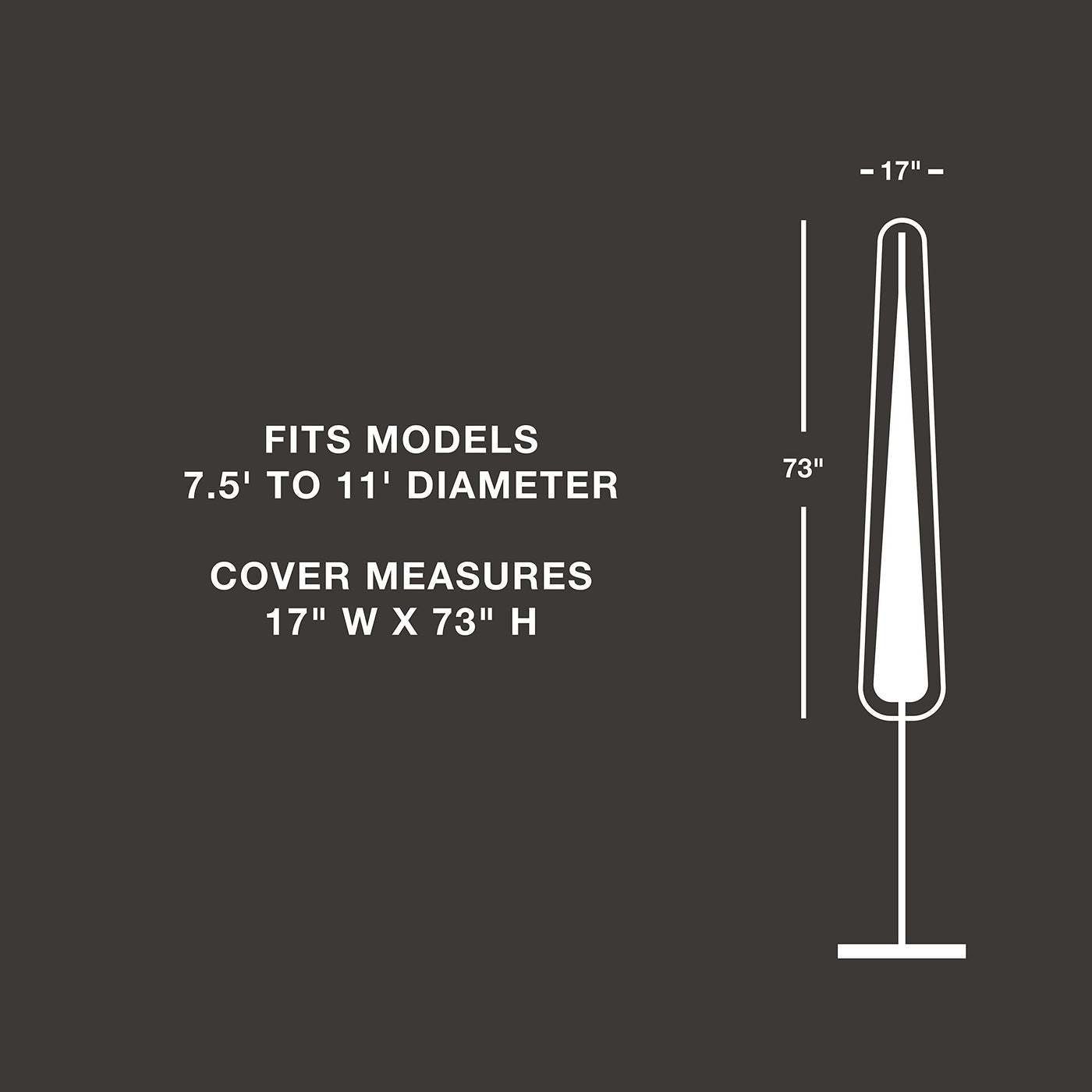 Q: What sizes of patio umbrellas does the True Guard cover fit?A: The True Guard Patio Umbrella Cover is designed to fit most patio umbrellas ranging from 7.5 feet to 11 feet in diameter.