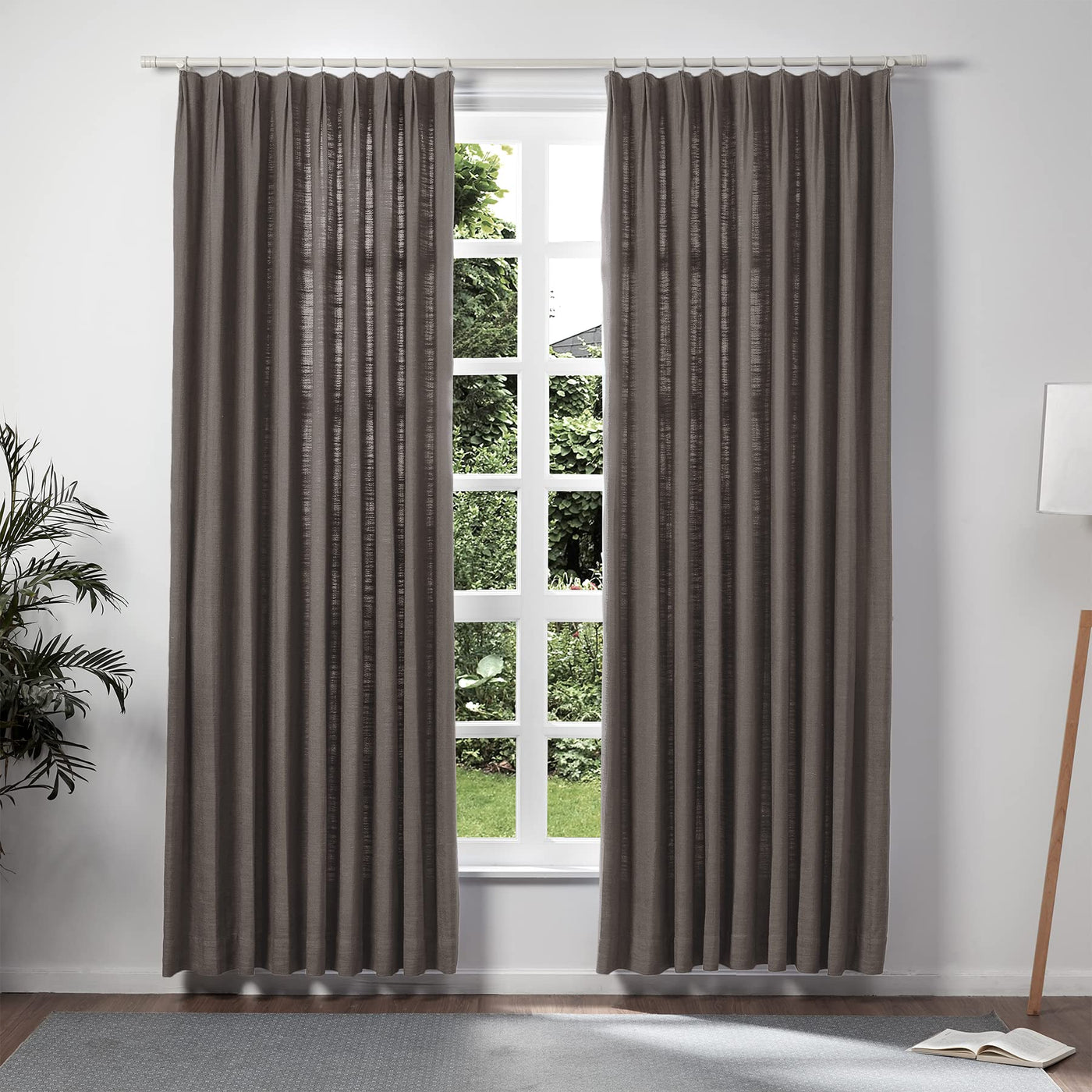 Twopages Chocolate Tart Linen Pinch Pleat Drape For Living Room, Window Treatment Curtain Panel Double Layer Room Darkening Ligh