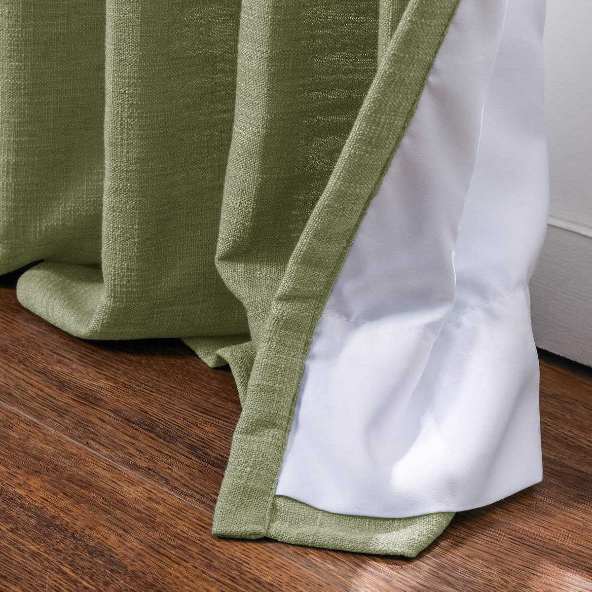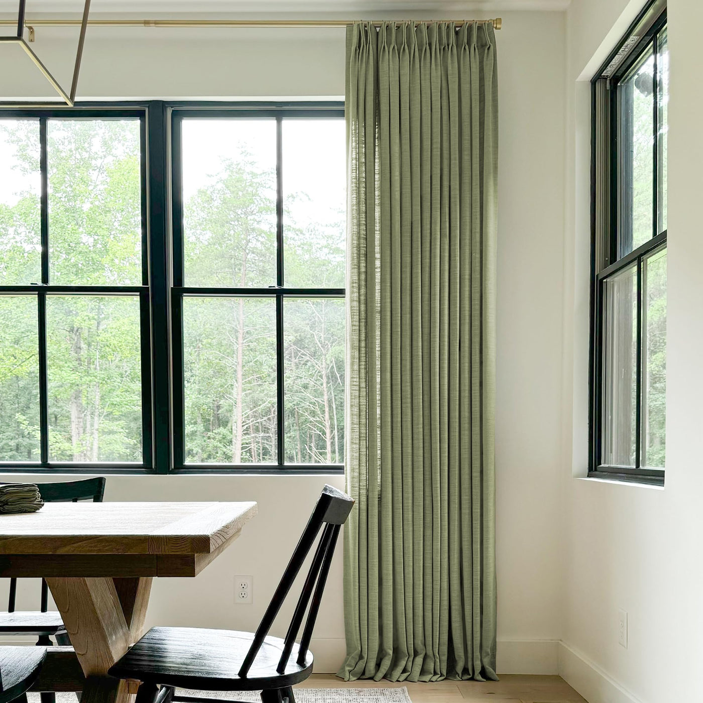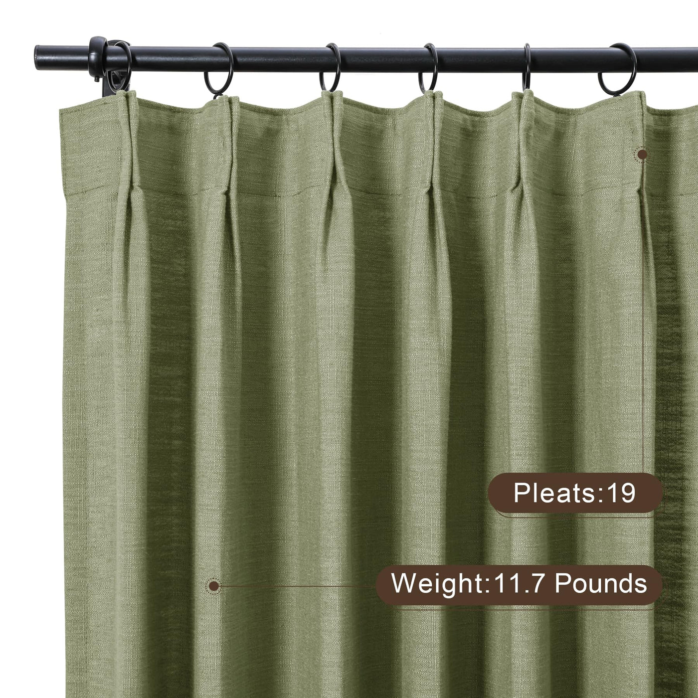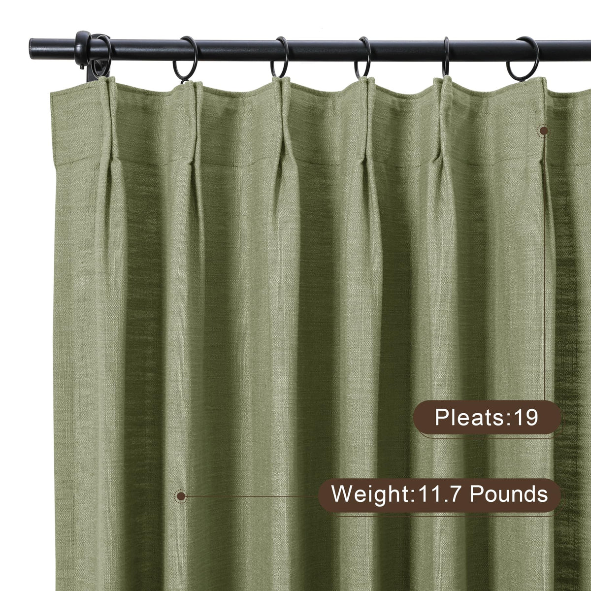 Twopages Double Layer Lined Curtain Olive Linen Blend Light Filtering Pinch Pleat Curtain For Kitchen, Room Darkening Window Tre